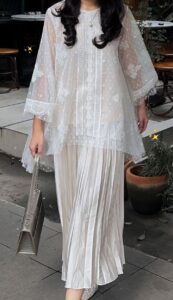 Buat yang suka tampil feminin, outfit dengan aksen ruffle dan brokat wajib dicoba. Ruffle kecil di bagian lengan atau rok bisa bikin penampilan makin manis tanpa terkesan berlebihan. Sementara itu, brokat dengan motif floral atau abstrak memberikan kesan mewah dan elegan.
