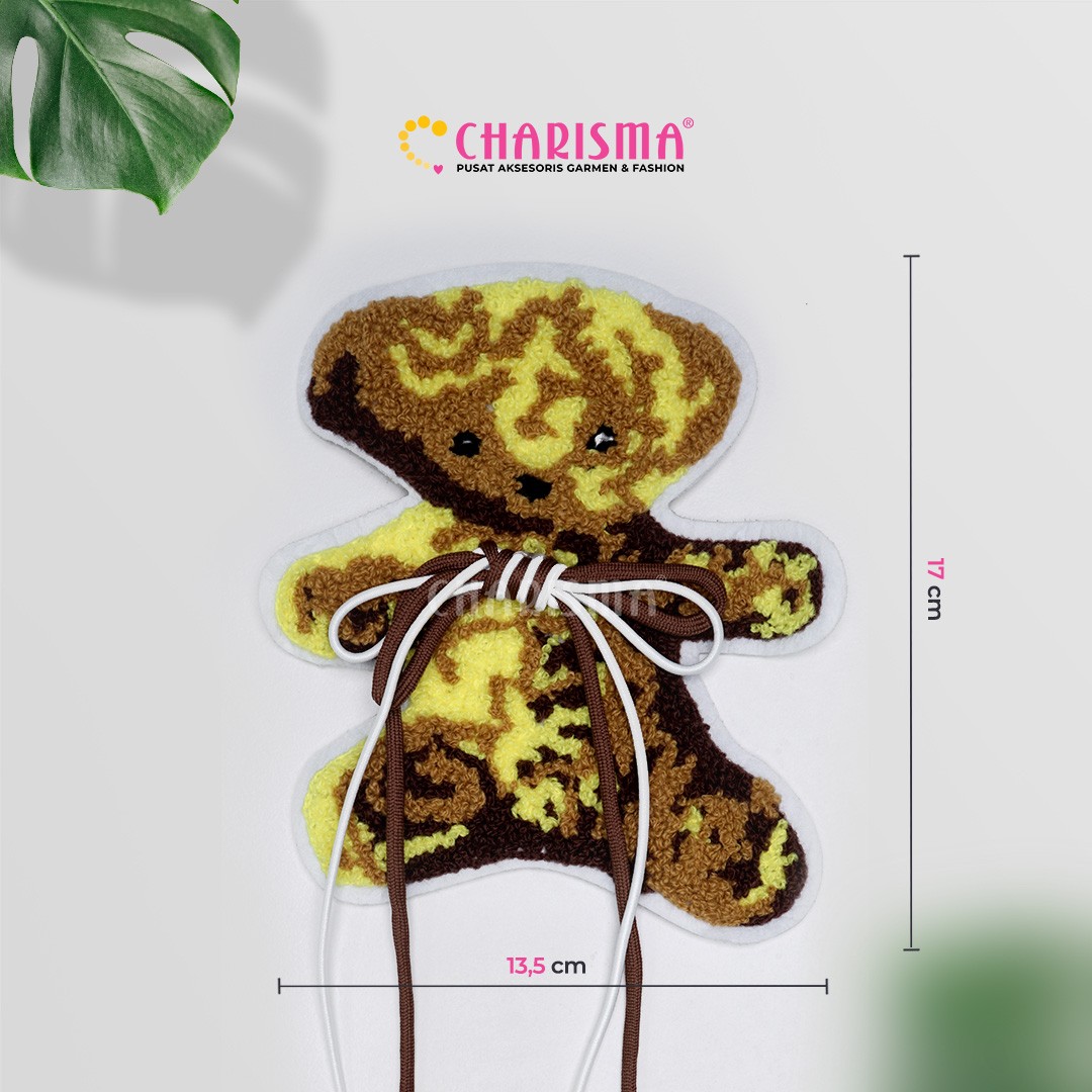 Aplikasi bordir boneka tersedia dalam berbagai ukuran, mulai dari 14,5 x 16 cm sampai dengan 20 x 12 cm, sehingga dapat disesuaikan dengan ukuran dan jenis pakaian atau item yang akan dihiasinya.