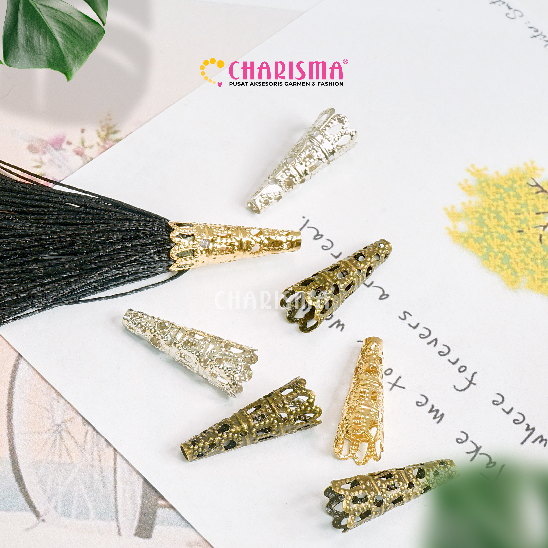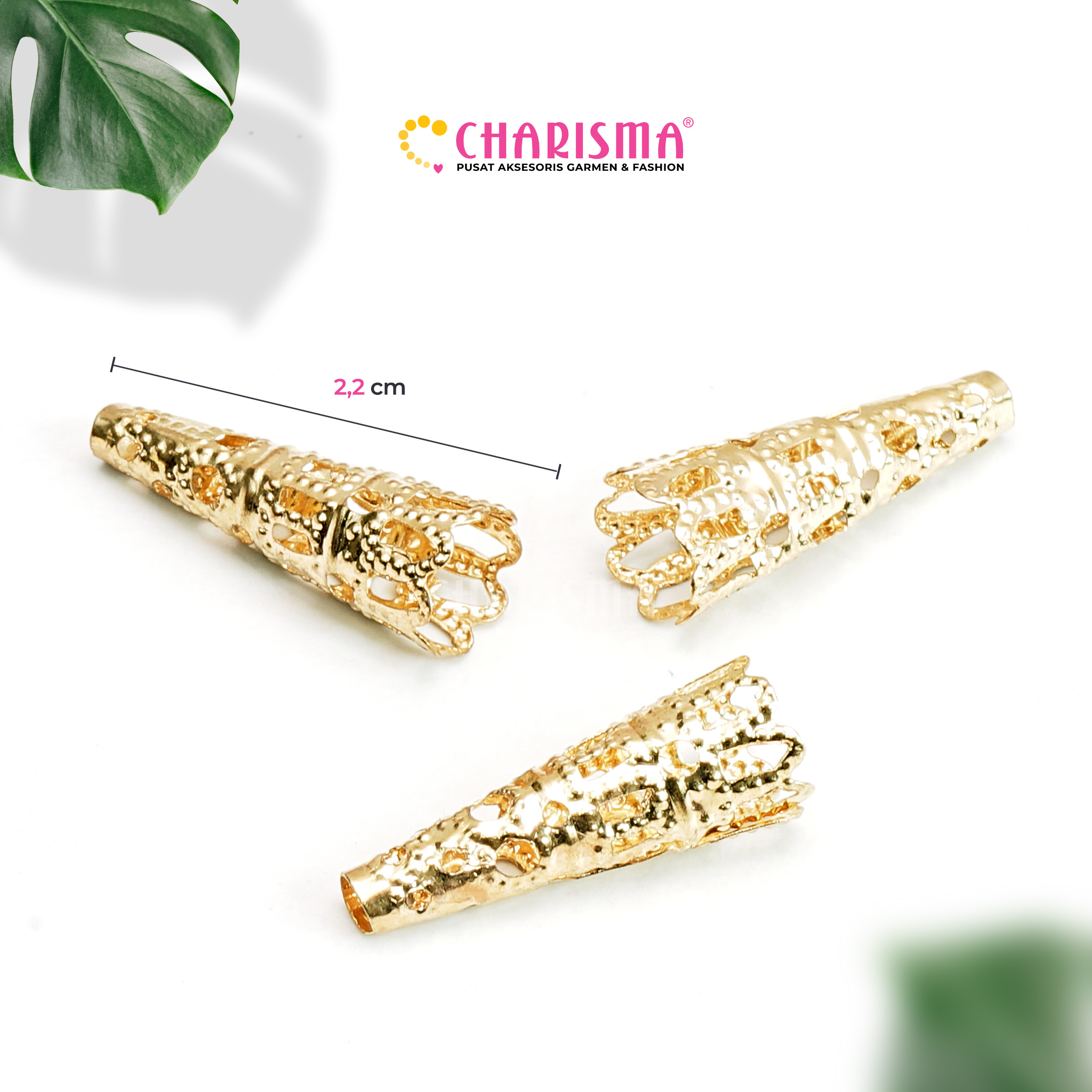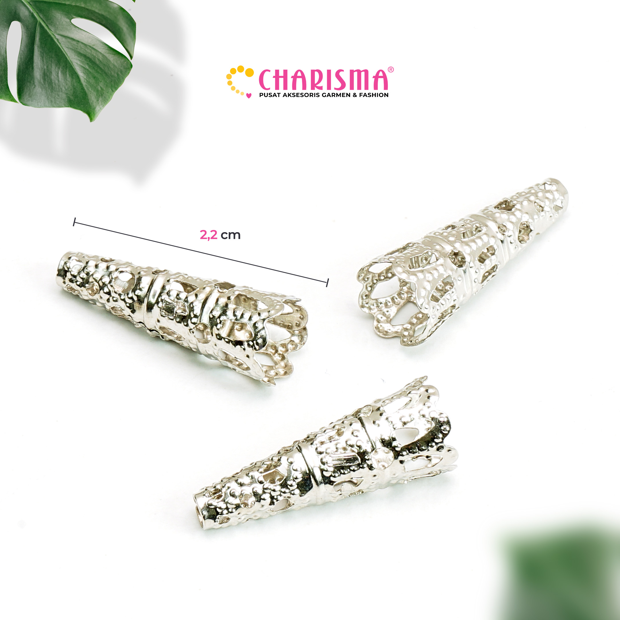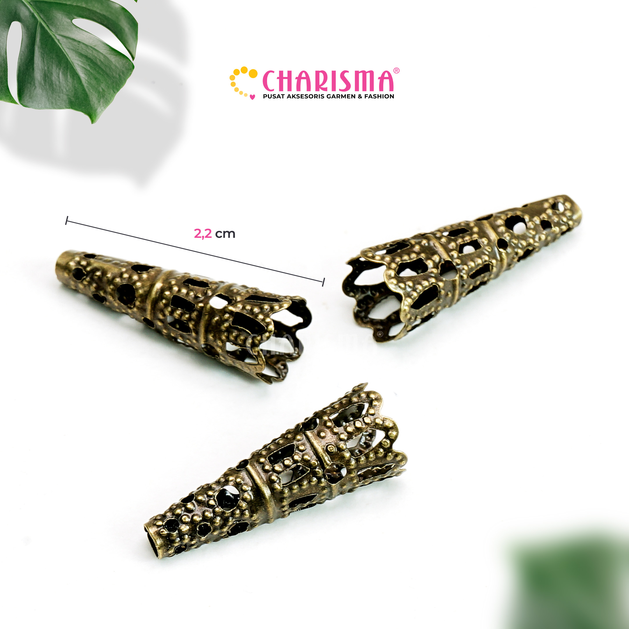 Besi kerucut ini merupakan produk yang terbuat dari campuran besi dan aluminium, menciptakan paduan material yang kokoh dan ringan. Desainnya yang khas berbentuk kerucut menambah sentuhan estetika pada aksesoris tari atau bahan tambahan gelang. Kombinasi besi dan aluminium memberikan kekuatan struktural yang diperlukan untuk menjaga keawetan produk, sementara keberadaan aluminium juga memberikan ringan sehingga nyaman untuk dipakai.