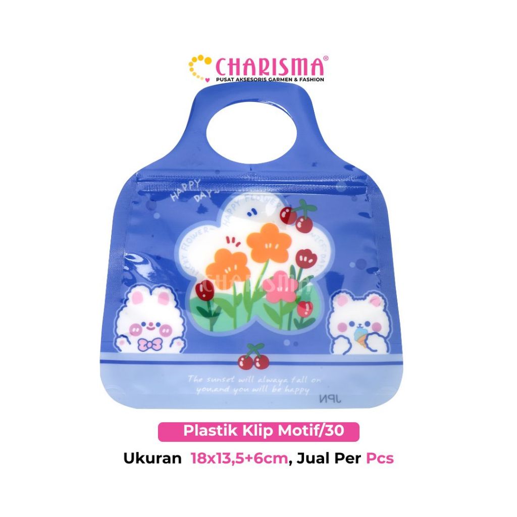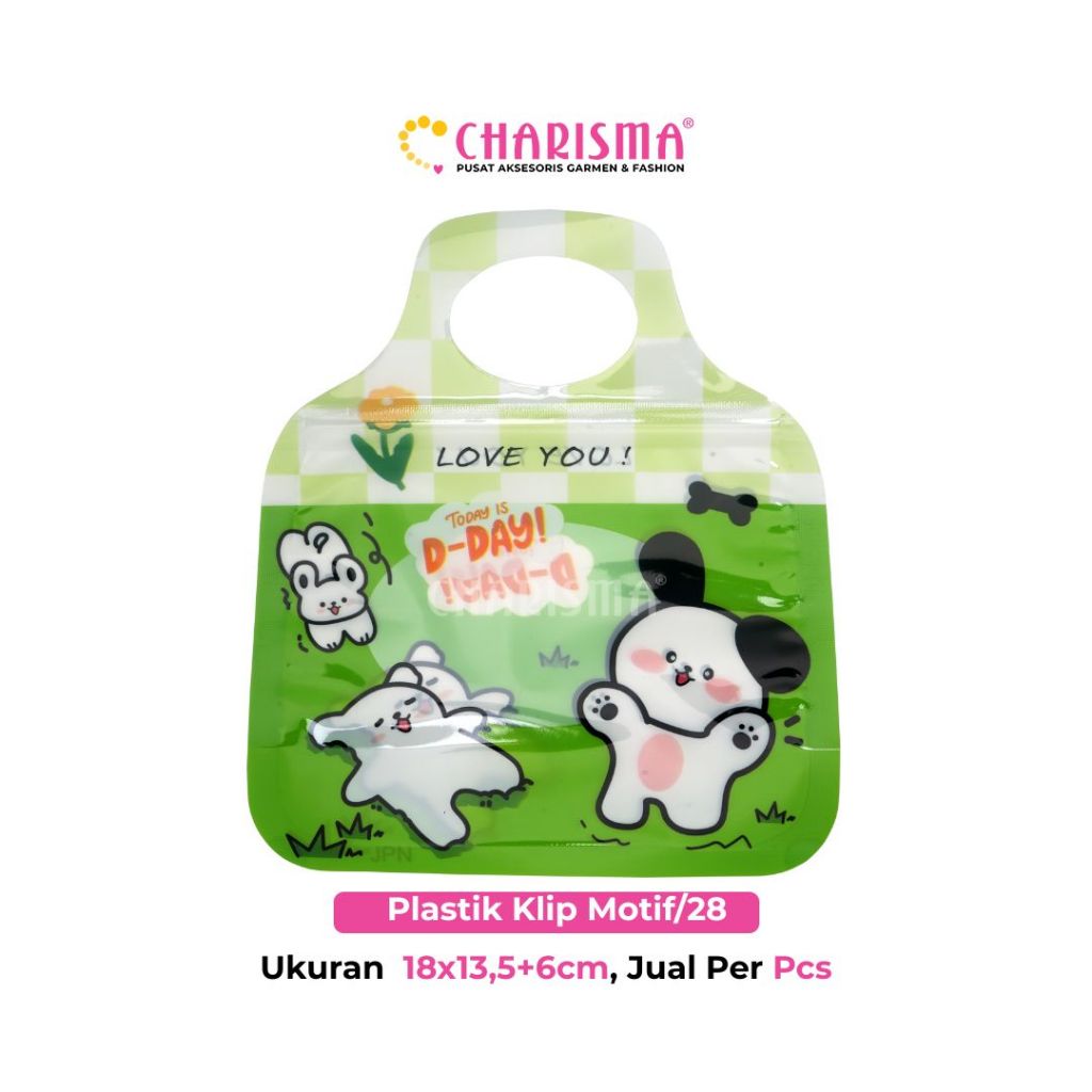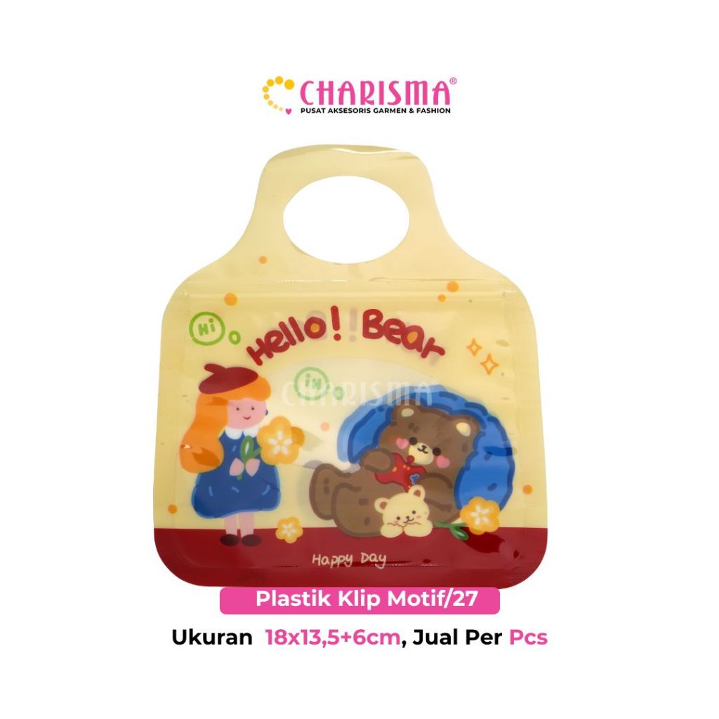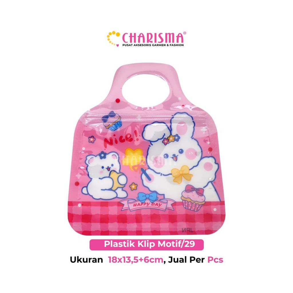Charisma Plastik Klip Motif Kartun ini dilengkapi dengan ziplock yang kedap udara dan tahan air. Dapat digunakan untuk kemasan aksesoris, souvenir maupun cookies dan kue kering lainnya. Aman digunakan untuk dijadikan kemasan cookies atau makanan kering lainnya.