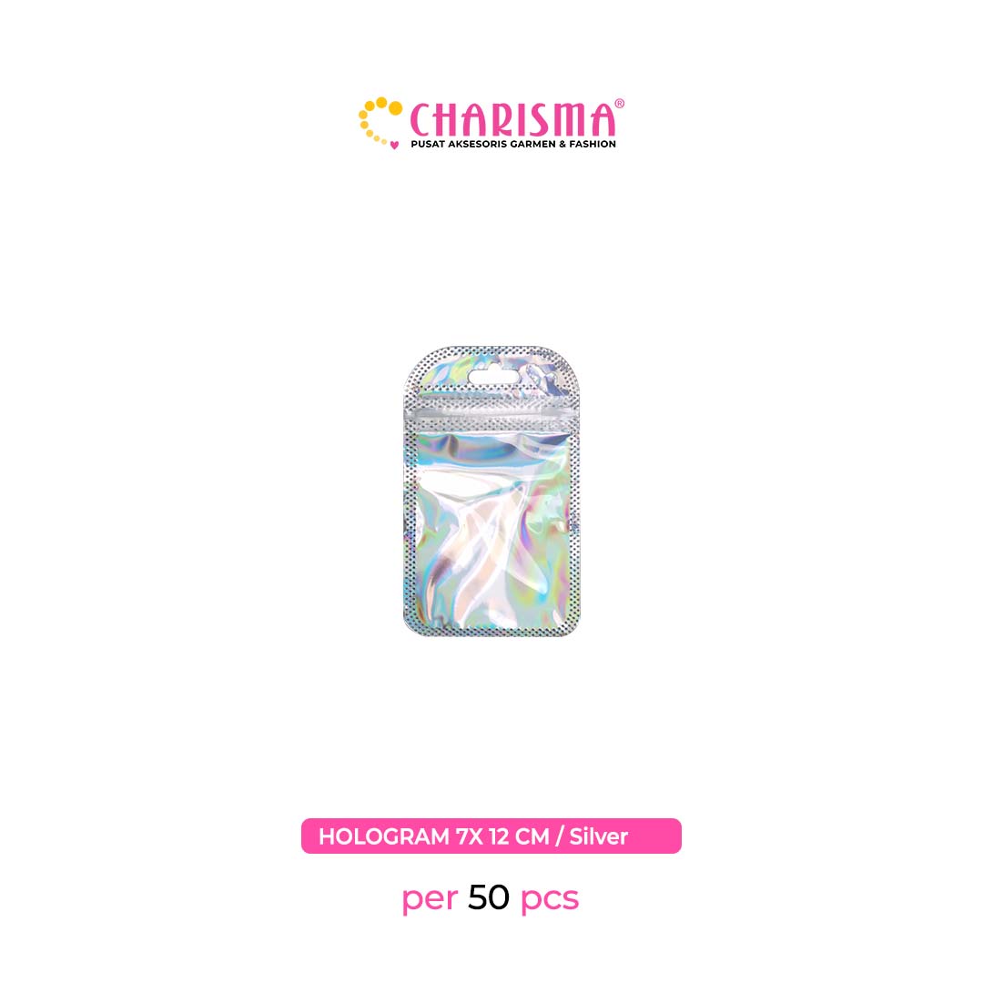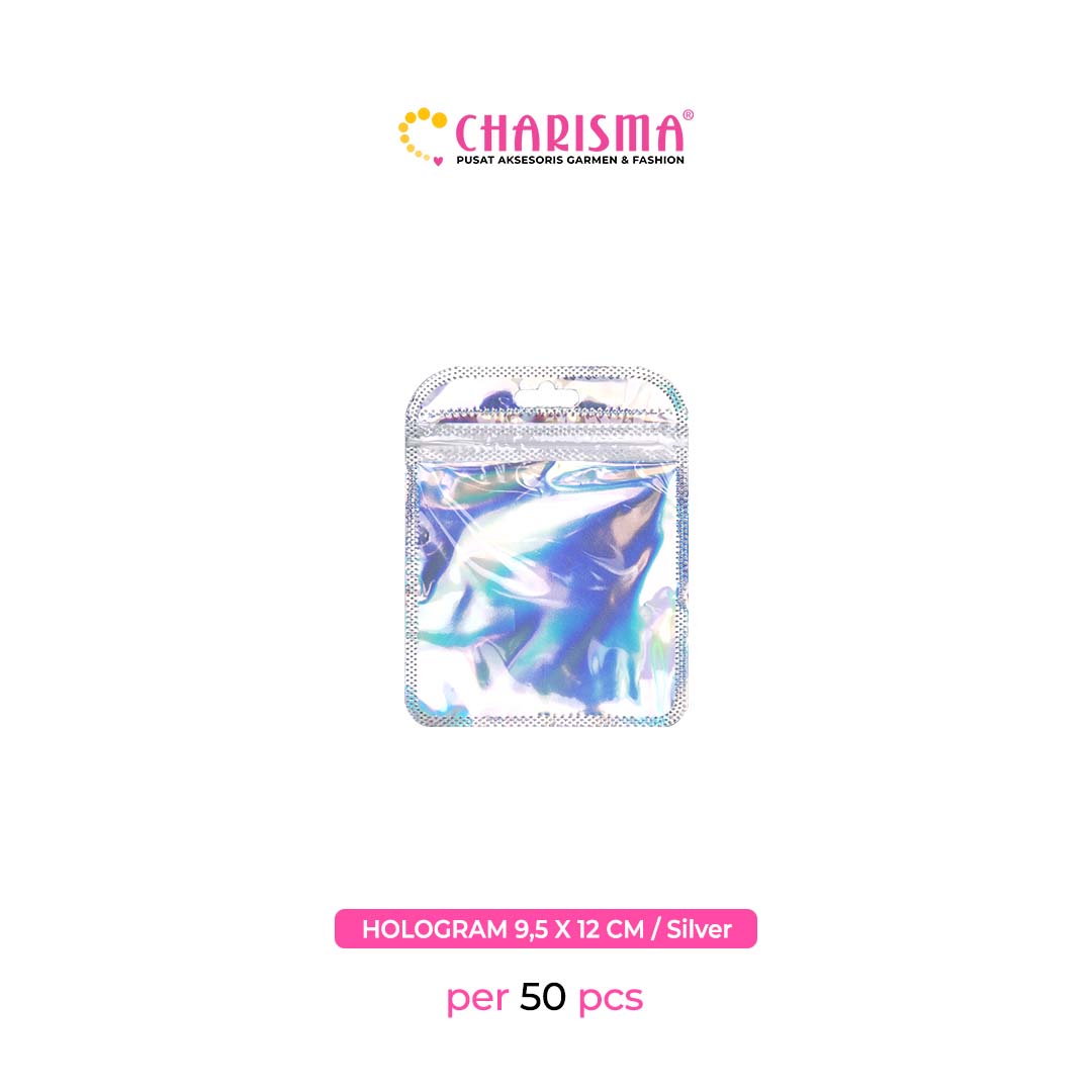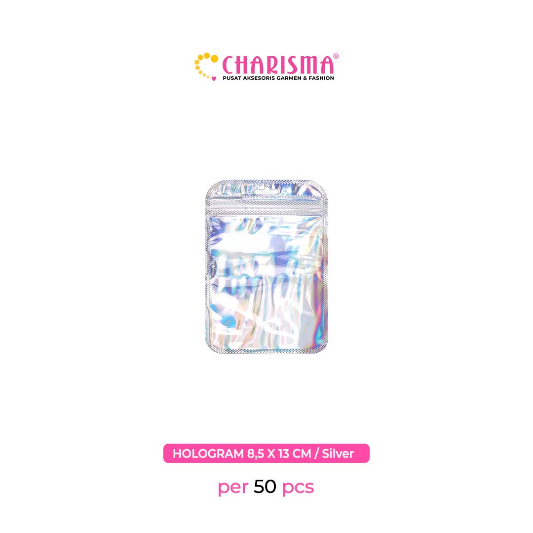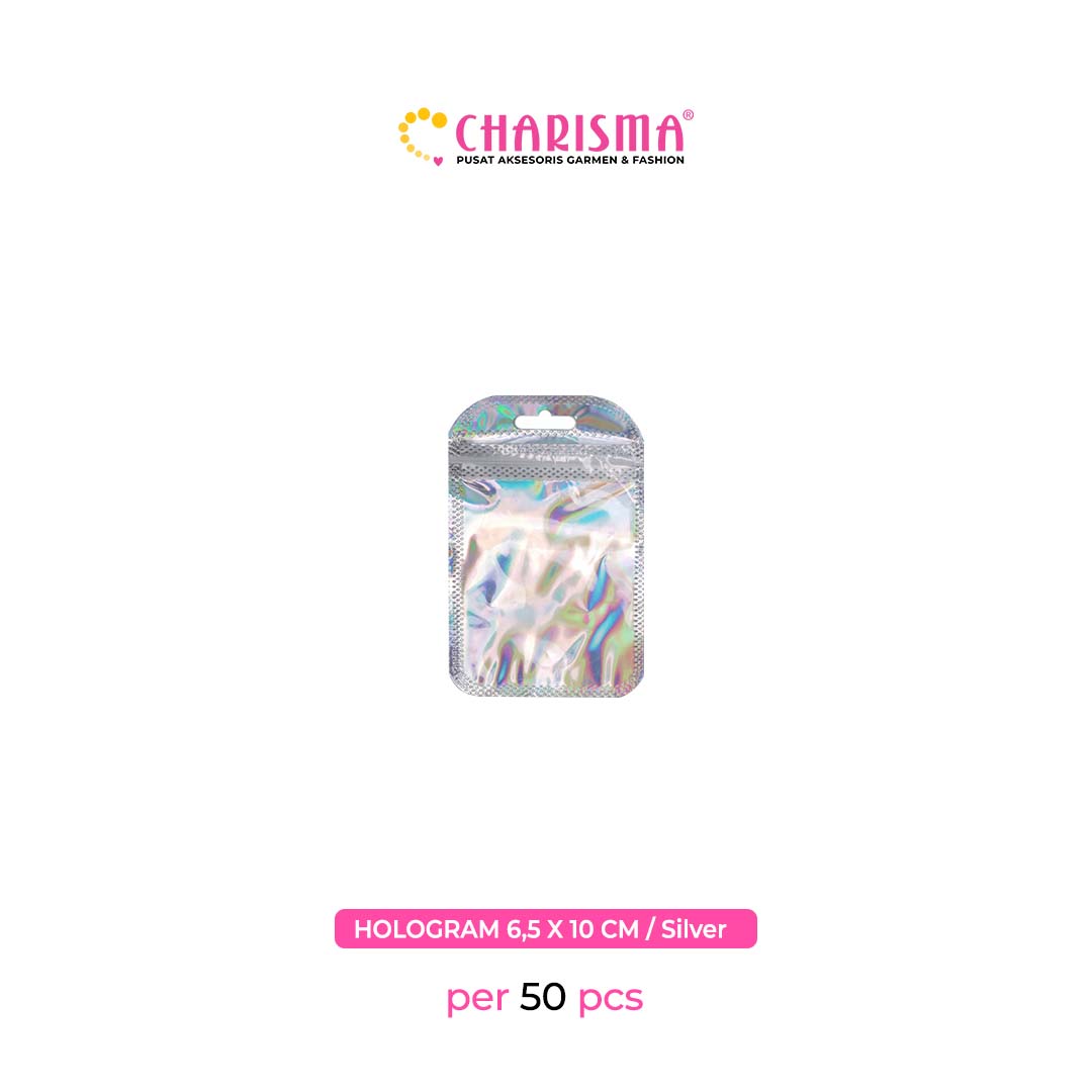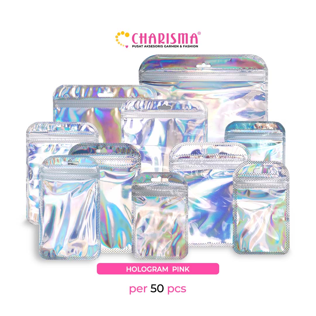 Charisma Plastik Klip - Plastik Ziplock hollo gram / Kemasan Dengan Handle (Hollogram silver dan pink) / Harga Per 50 Pcs