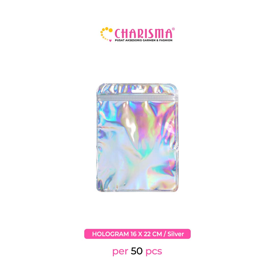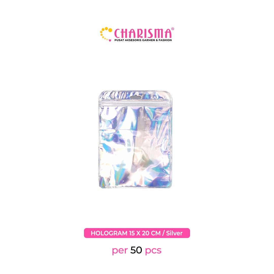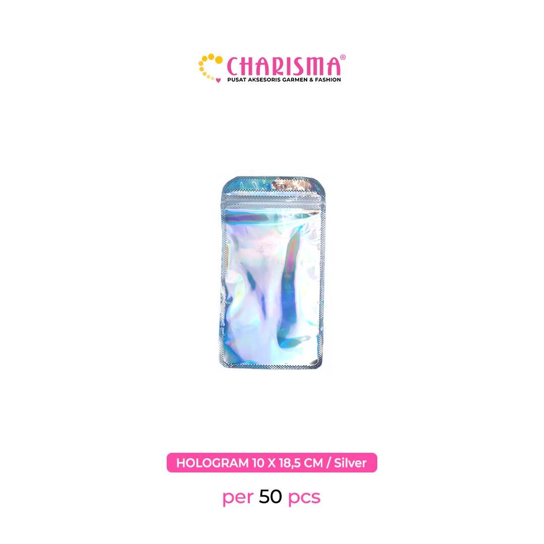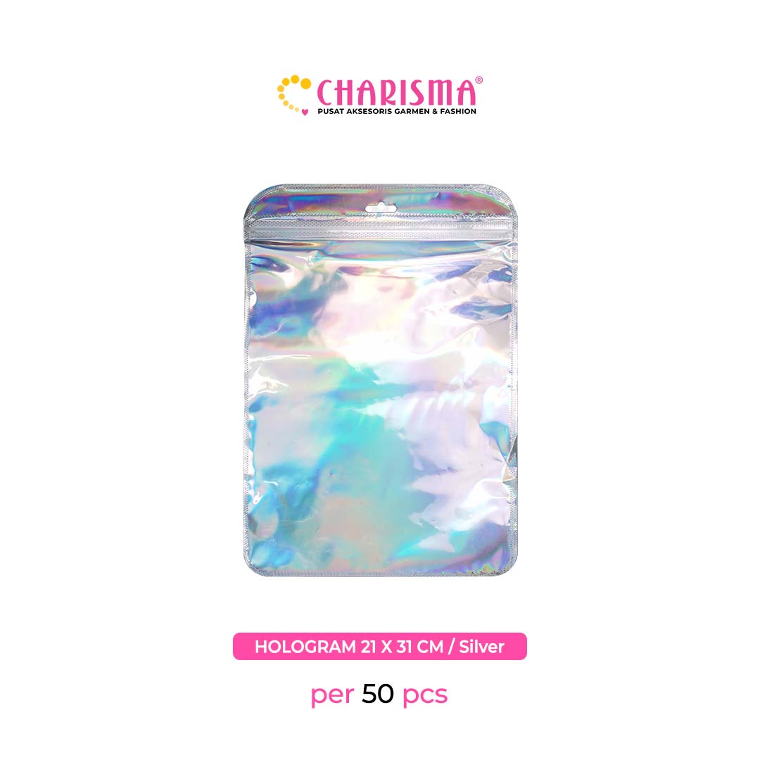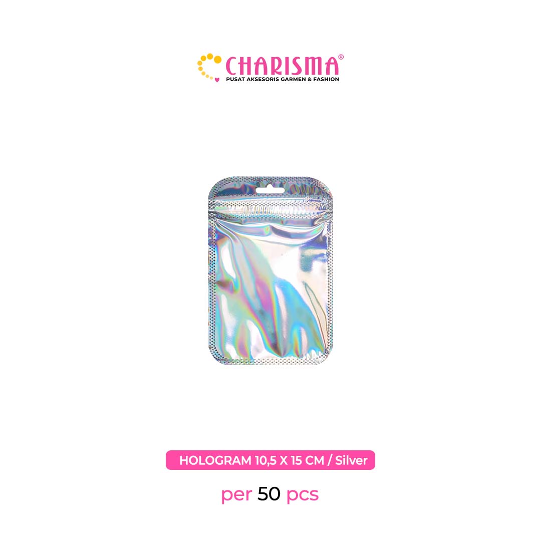 Charisma Plastik Klip - Plastik Ziplock hollo gram / Kemasan Dengan Handle (Hollogram silver dan pink) / Harga Per 50 Pcs