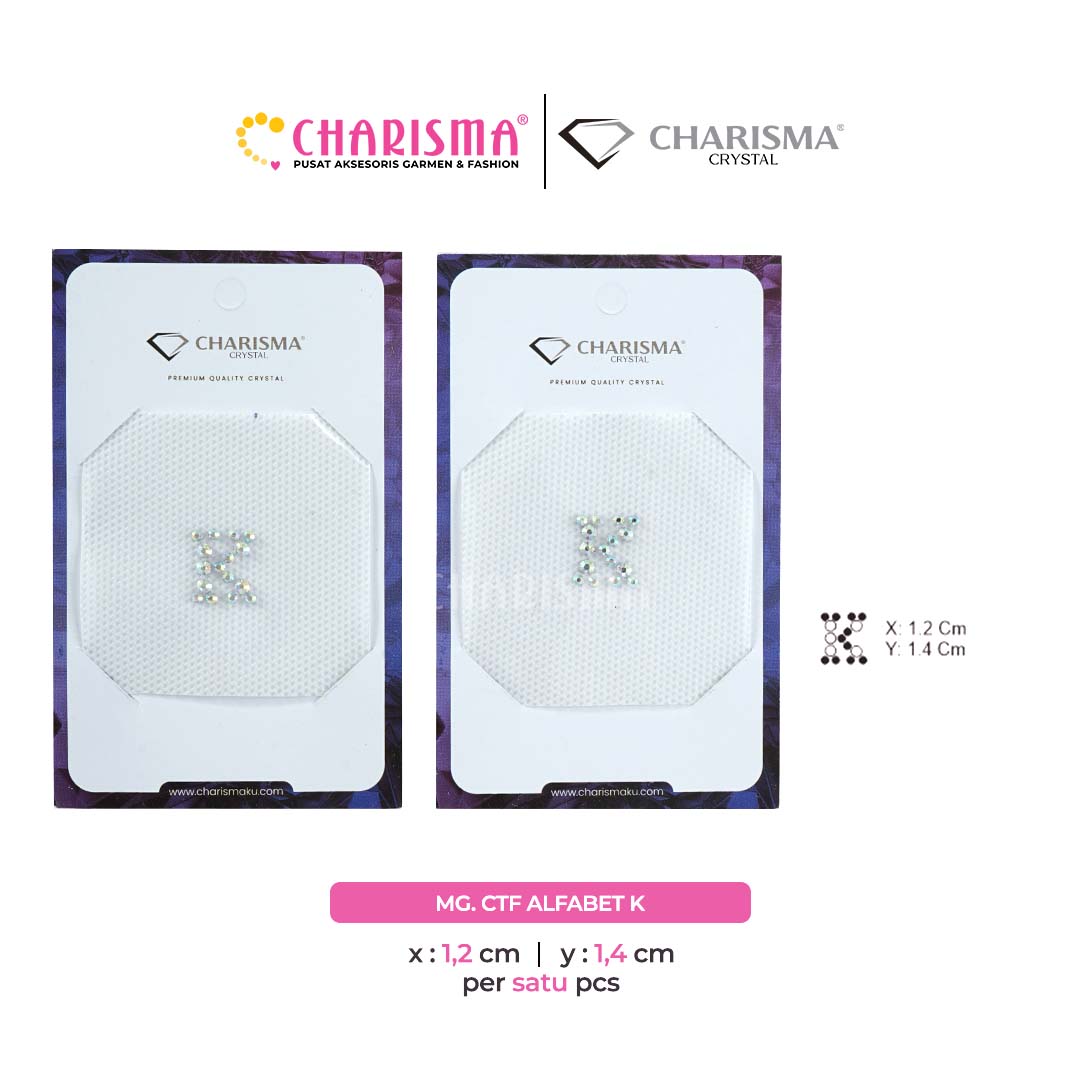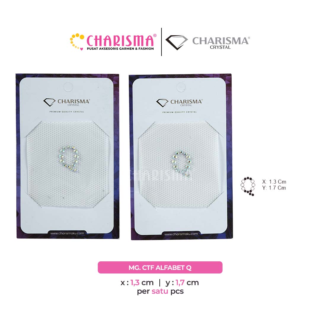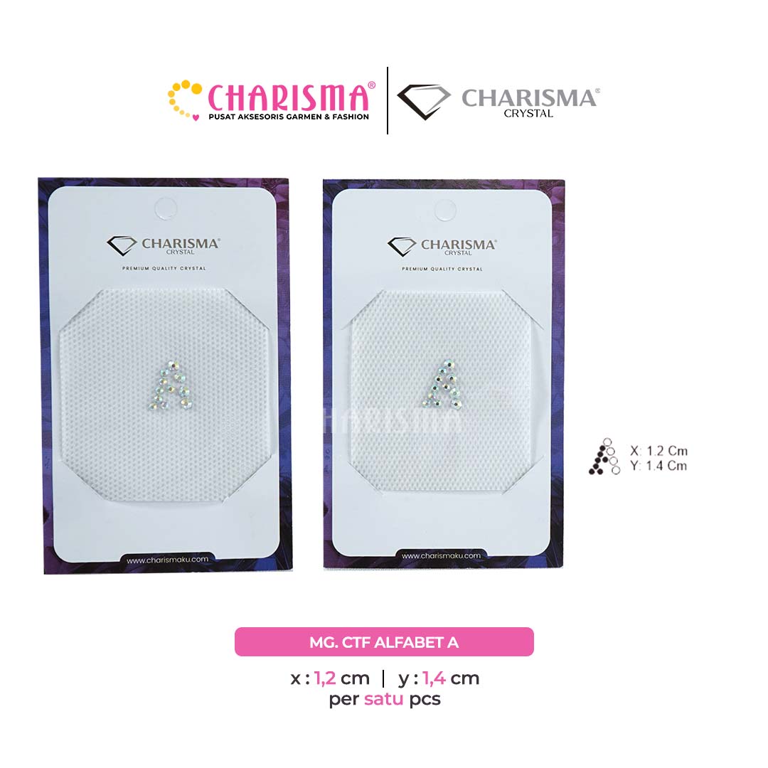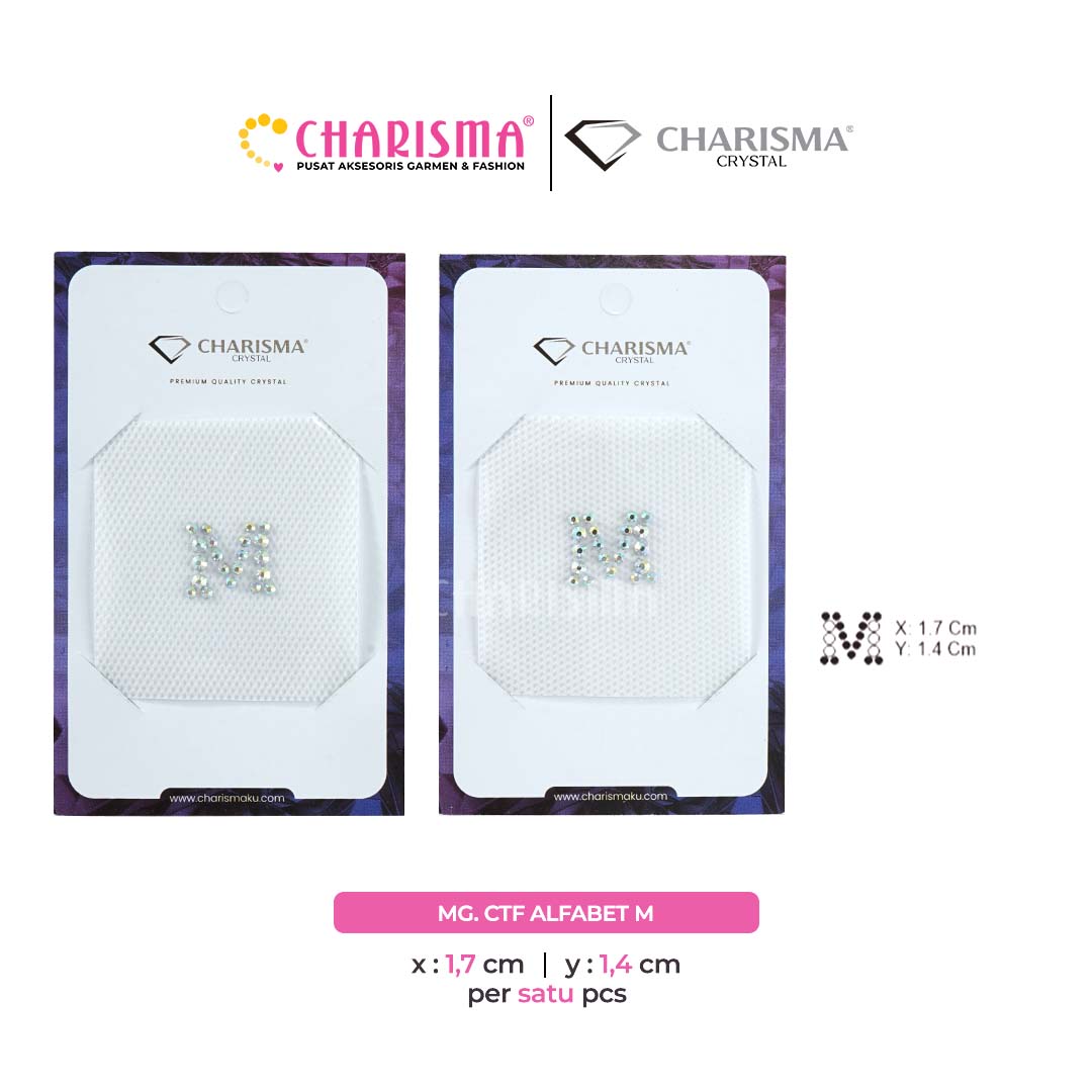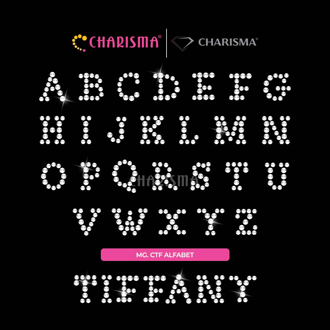 Charisma Crystal Mote gosok Alfabet Series adalah mote press yang sudah di desain dalam bentuk sticker siap pasang, aplikasi ini banyak digunakan sebagai dekorasi atau pelengkap pada fashion seperti gamis, abaya, dress, gaun pesta, t-shirt, jacket, hijab dan lainnya.