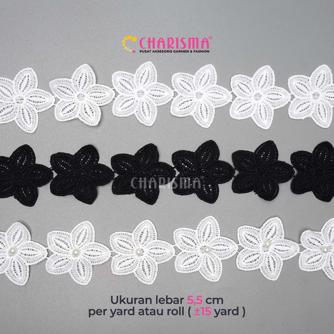 Charisma Renda Bordir Bunga FR SC 542 - Renda Bunga / Lebar 5,5cm / Harga Per Yard (90cm)