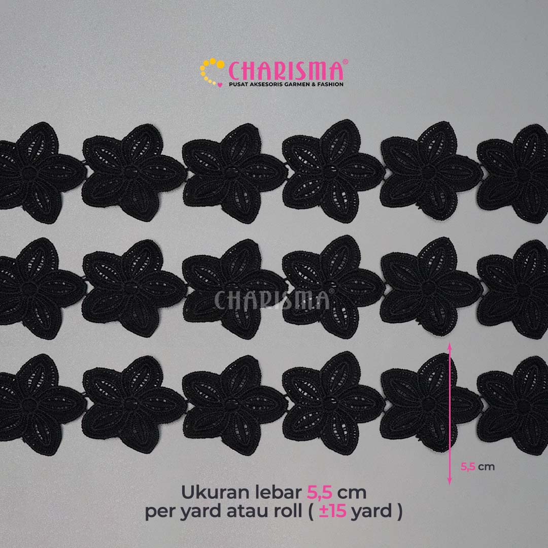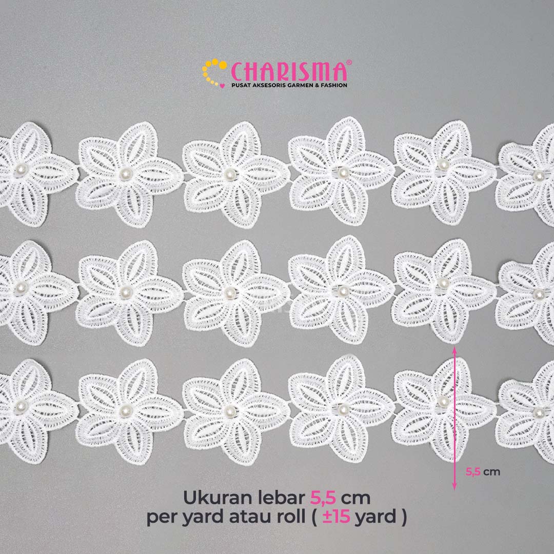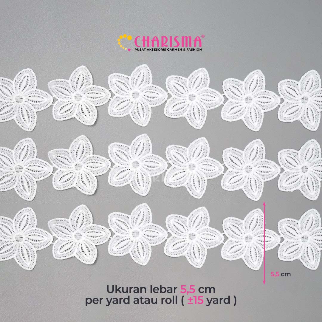 Charisma Renda bunga merupakan jenis renda yang di peroleh dari modifikasi bahan-bahan yang dirangkai/dibentuk menjadi bunga. sangat cocok sekali untuk tambahan aksessories di blouse, pakaian wanita, bando, dan lainnya.
