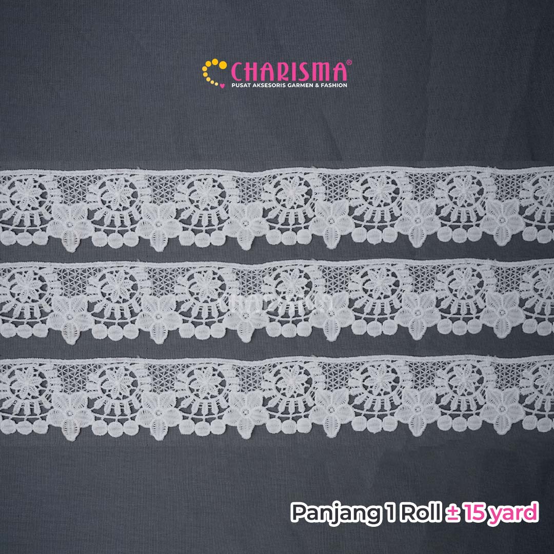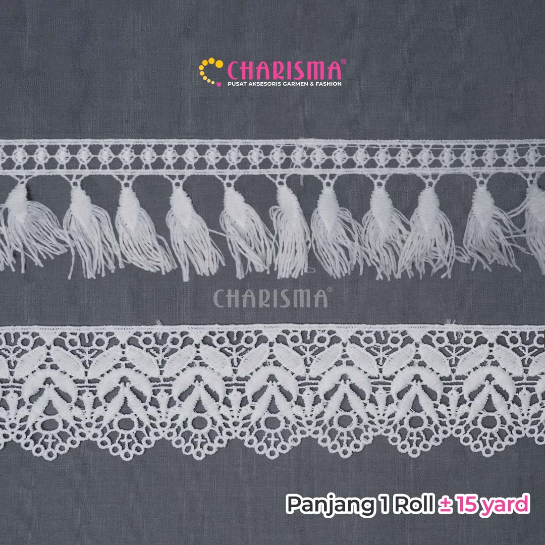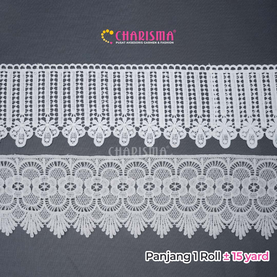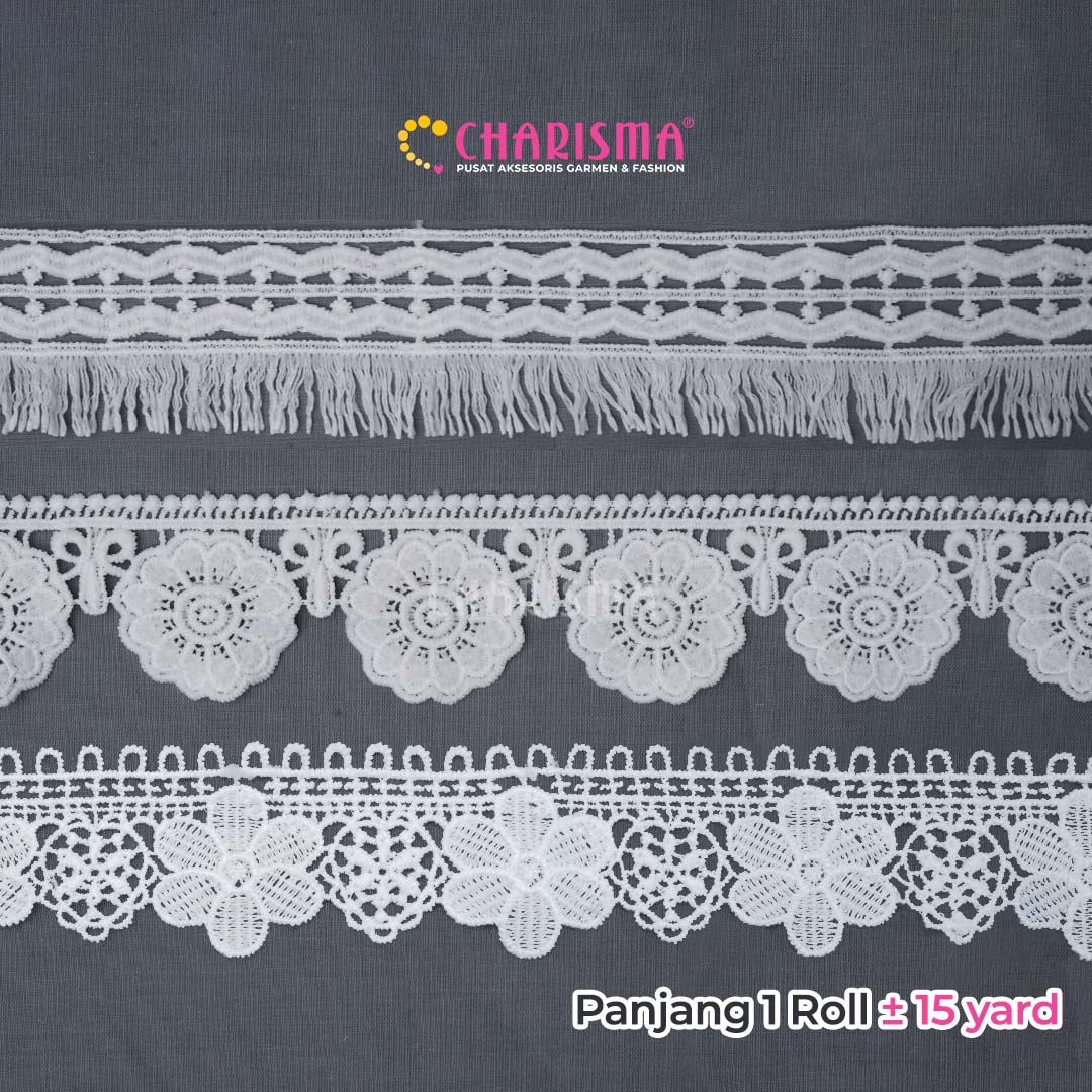 Charisma Renda Guiper banyak variasi ukuran dan model, cocok untuk diaplikasikan pada blouse, kemeja, dan untuk craft