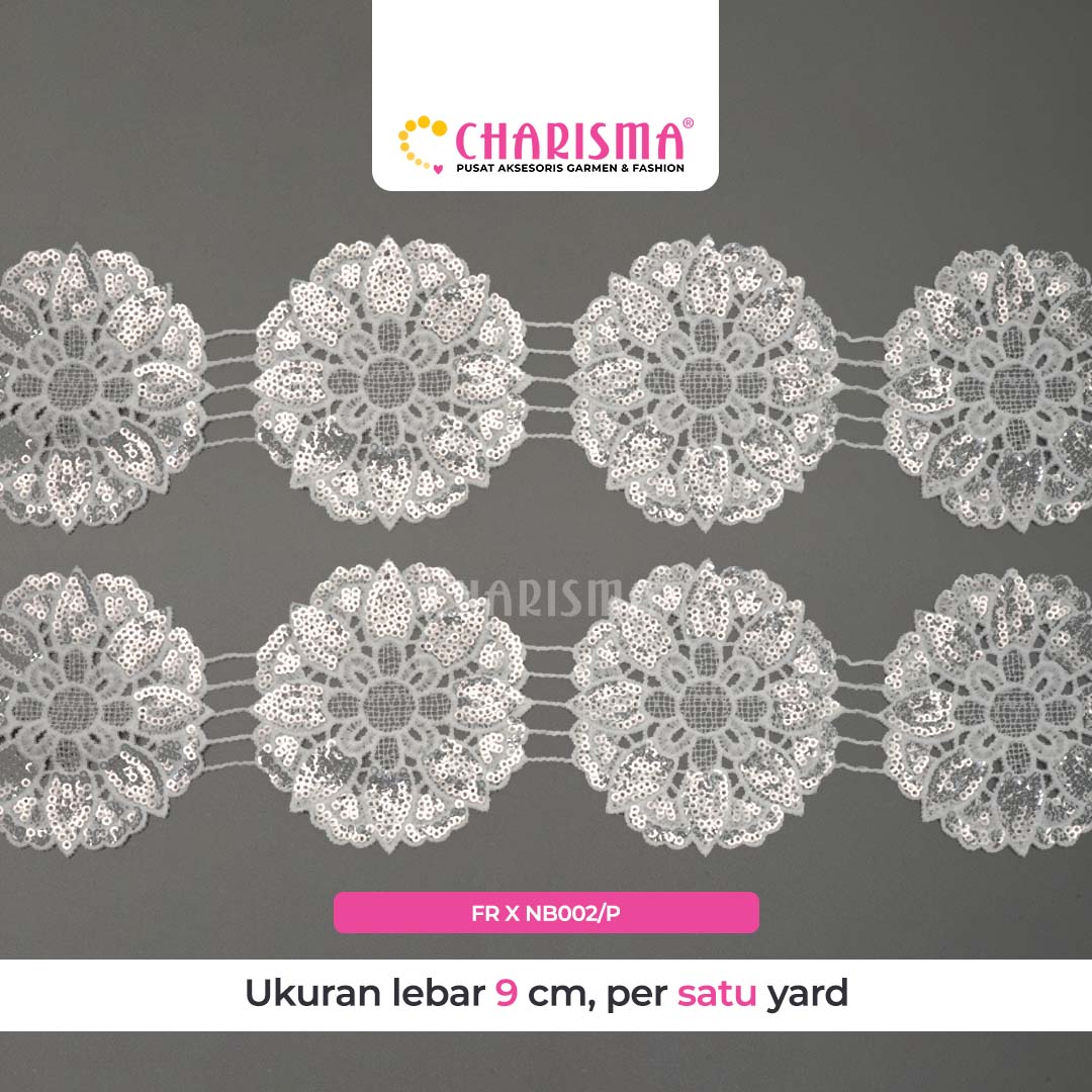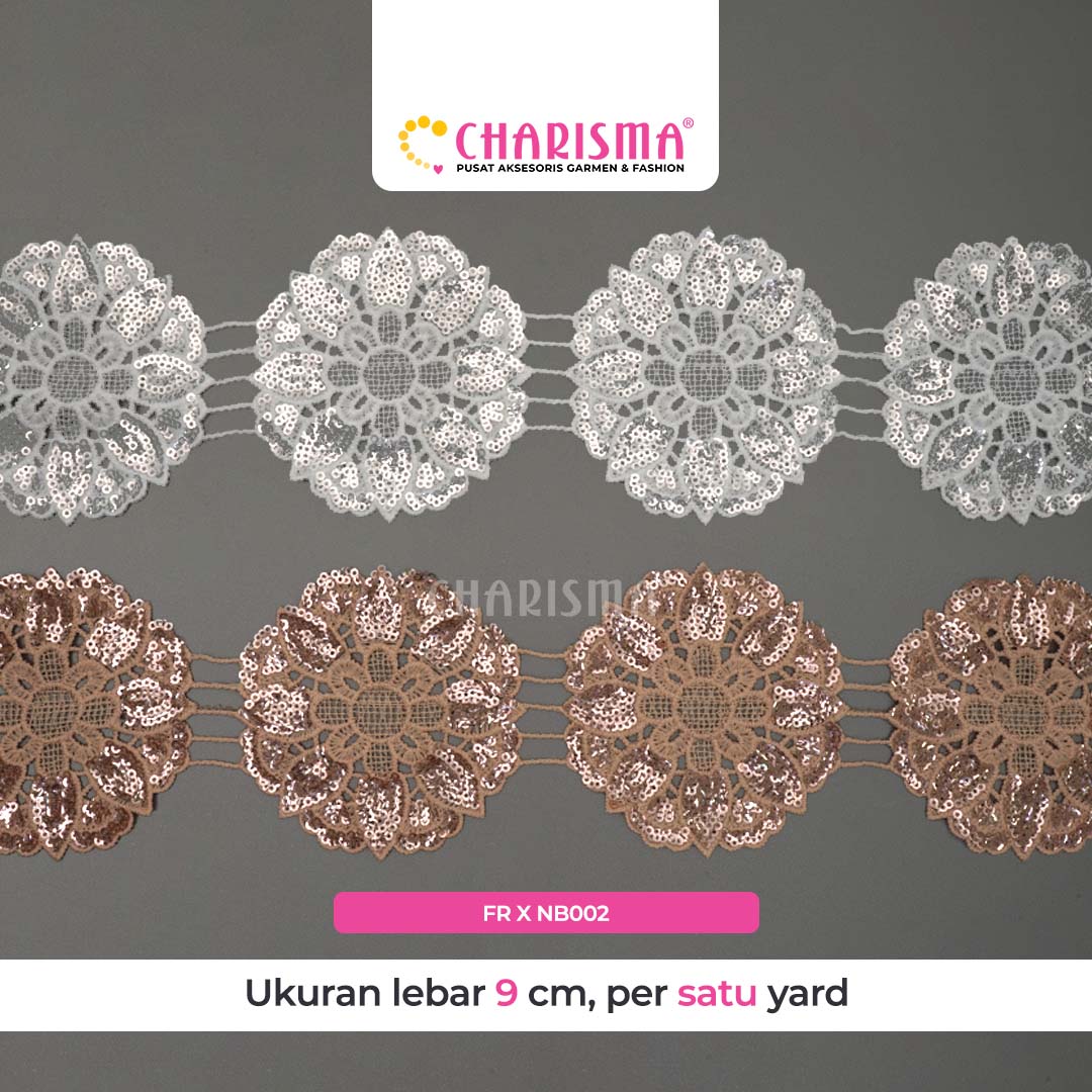• Charisma Renda Guiper Payet Bunga FRX NB002 - Renda Bordir / Lebar 9cm