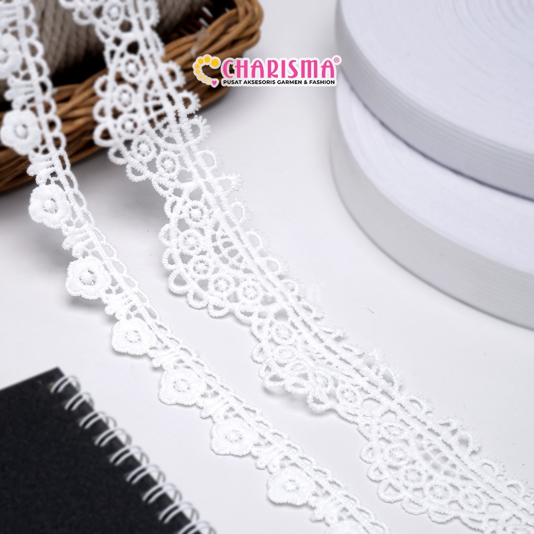 Renda guipper adalah jenis renda yang terbuat dari polyester, sering di aplikasikan di mukena, daster, gamis, blouse, dan pakaian lainnya. Material polyester memberikan kekuatan dan daya tahan pada renda, membuatnya cocok untuk penggunaan sehari-hari.