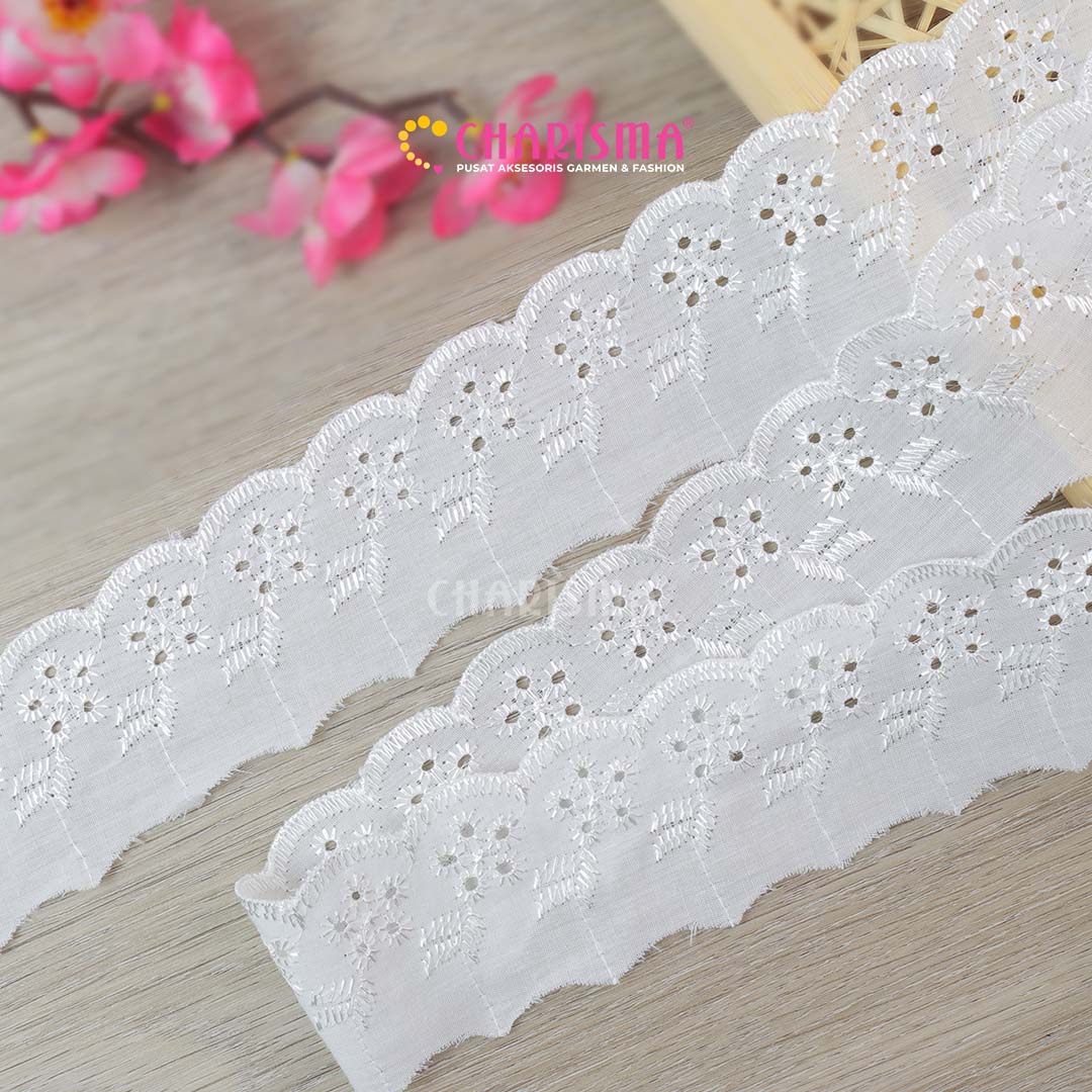 Charisma Renda Katun adalah sentuhan elegan untuk proyek kreasi Fashion-mu! Renda katun berkualitas tinggi ini memiliki lebar 4cm yang sempurna untuk menambahkan aksen cantik pada berbagai jenis karya tangan, pakaian hingga dekorasi pakaian.