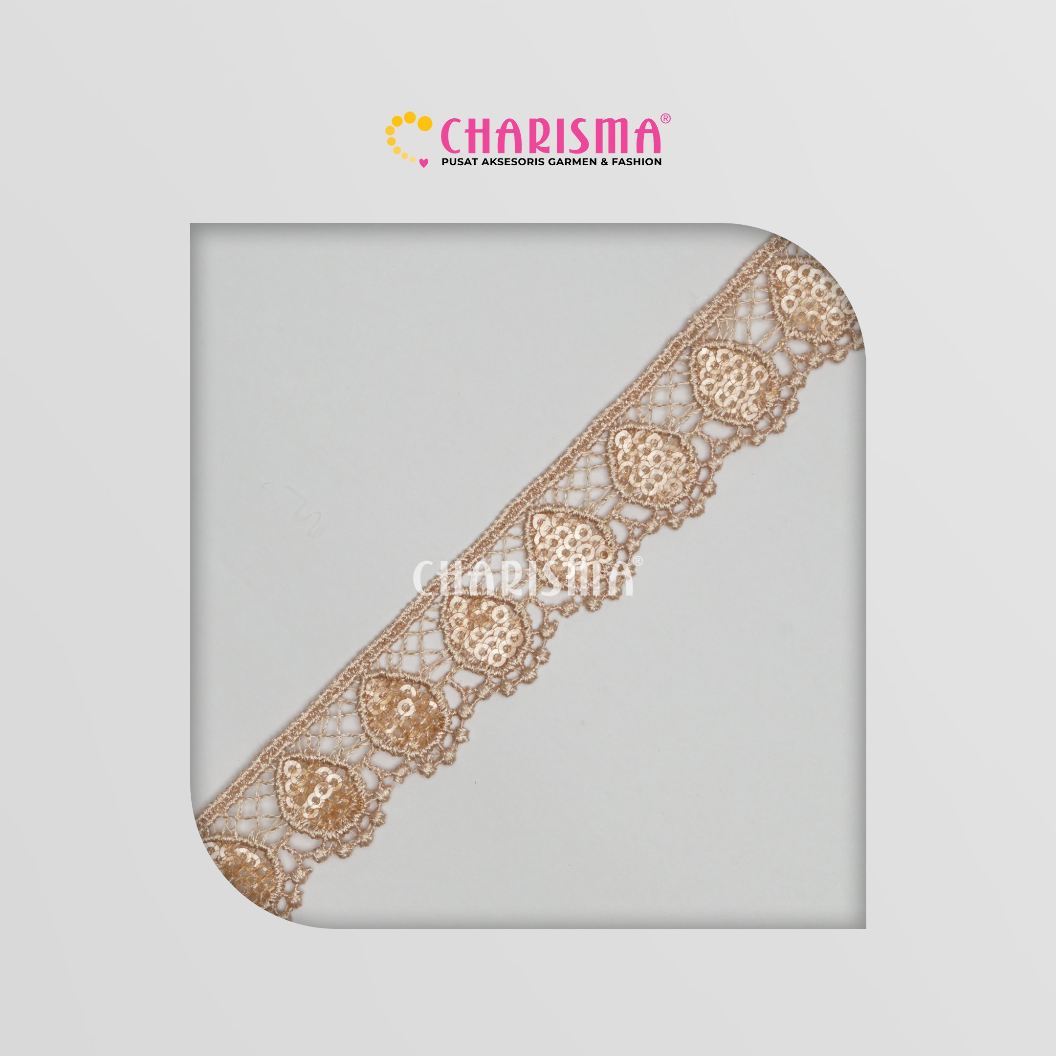 Renda dengan kombinasi payet. biasa digunakan untuk diaplikasikan ,di pakaian wanita, mukena, dan pelengkap fashion lain nya.