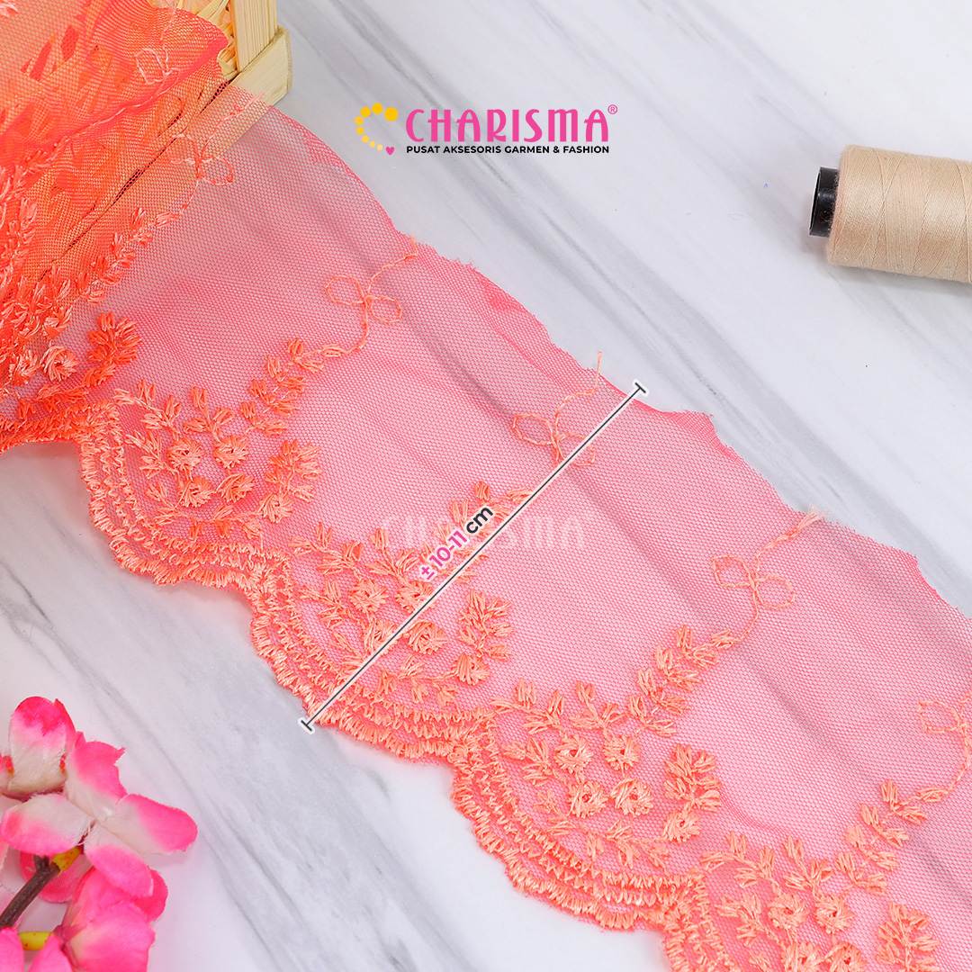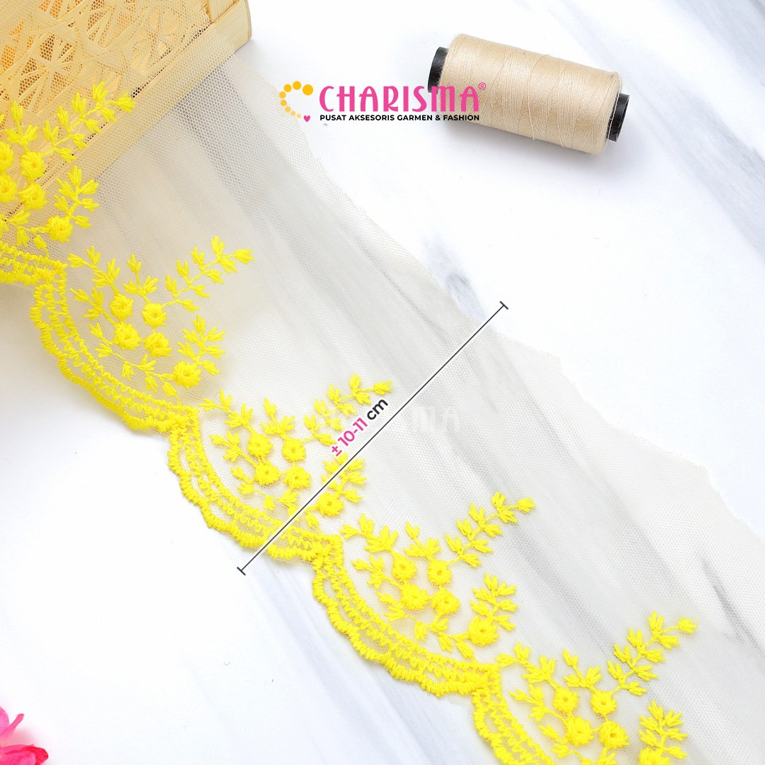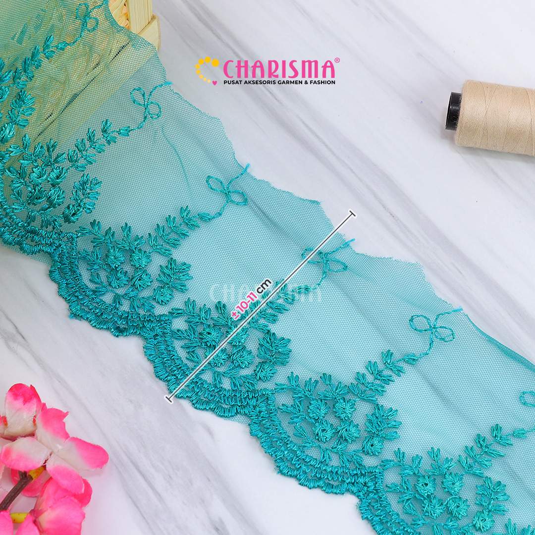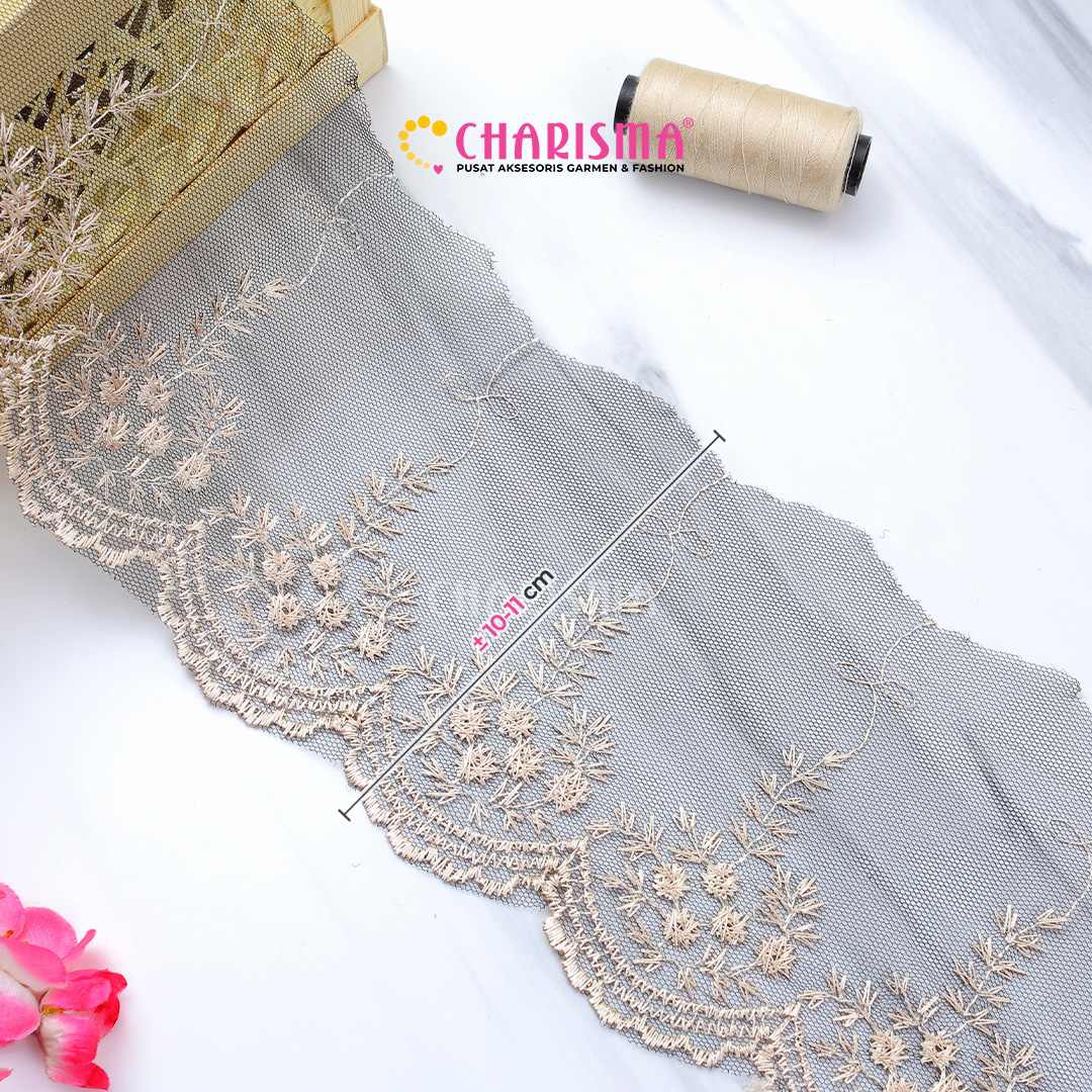 Bahan tulle yang ringan dan transparan, renda ini memberikan tampilan yang lembut dan anggun pada setiap proyek yang diaplikasikan.