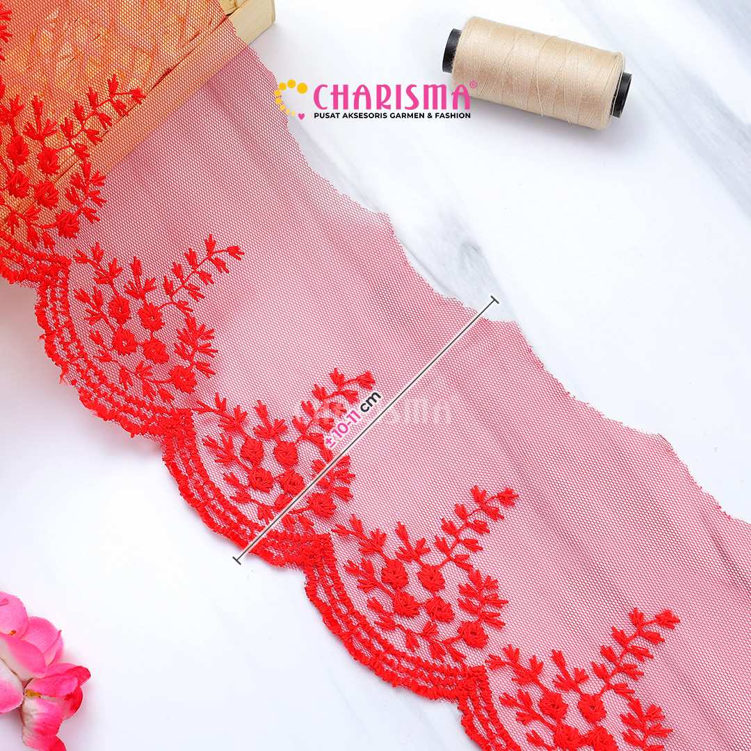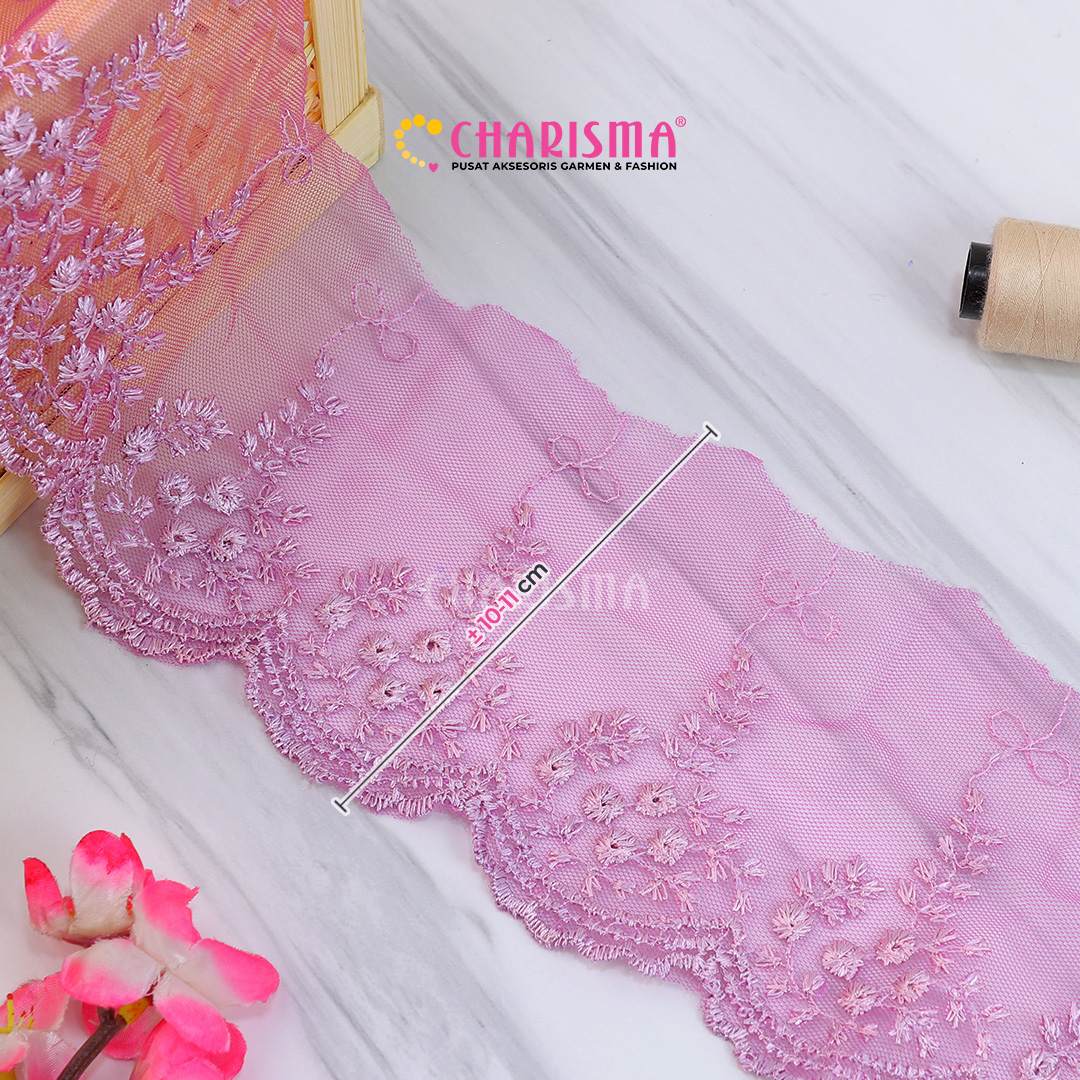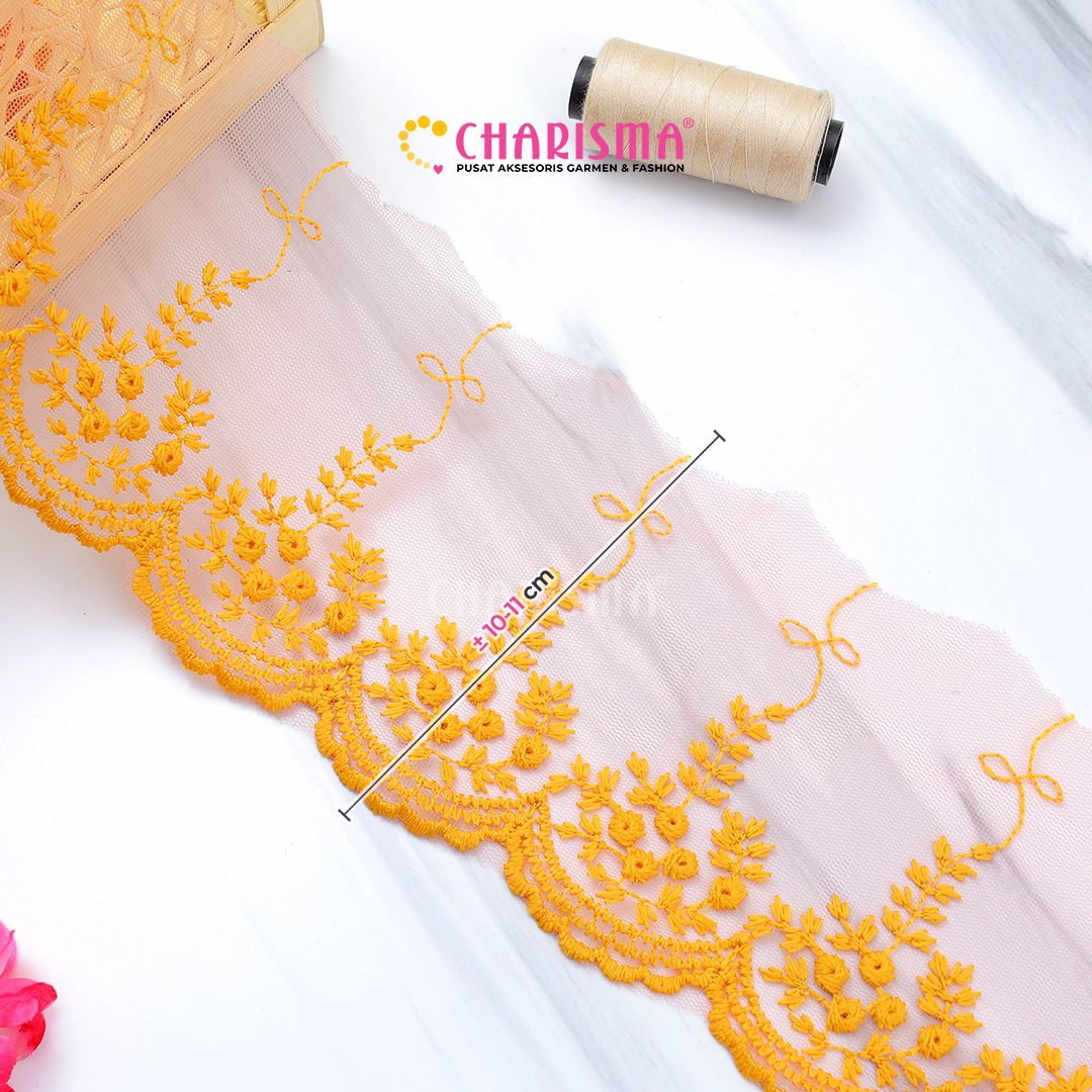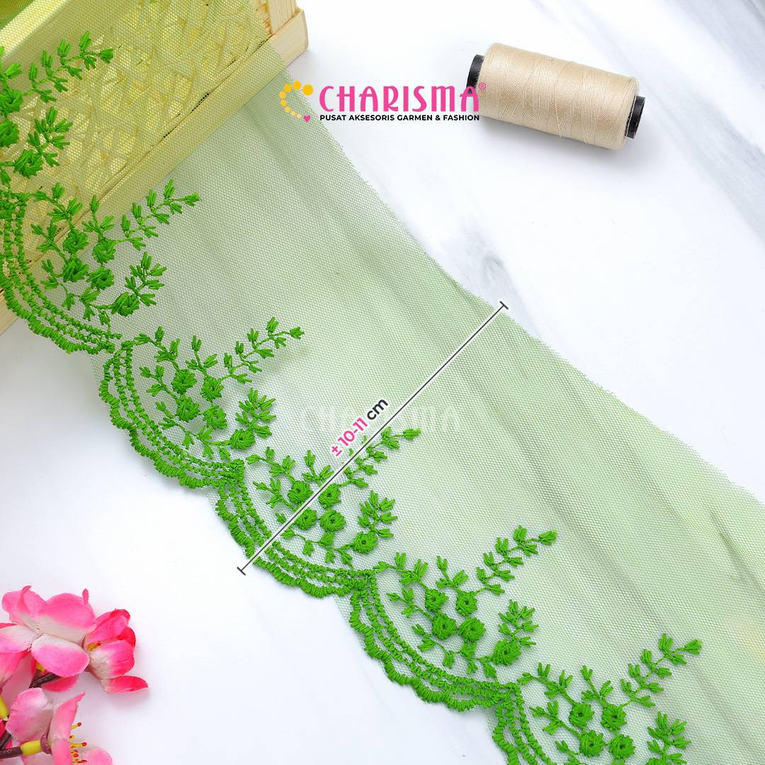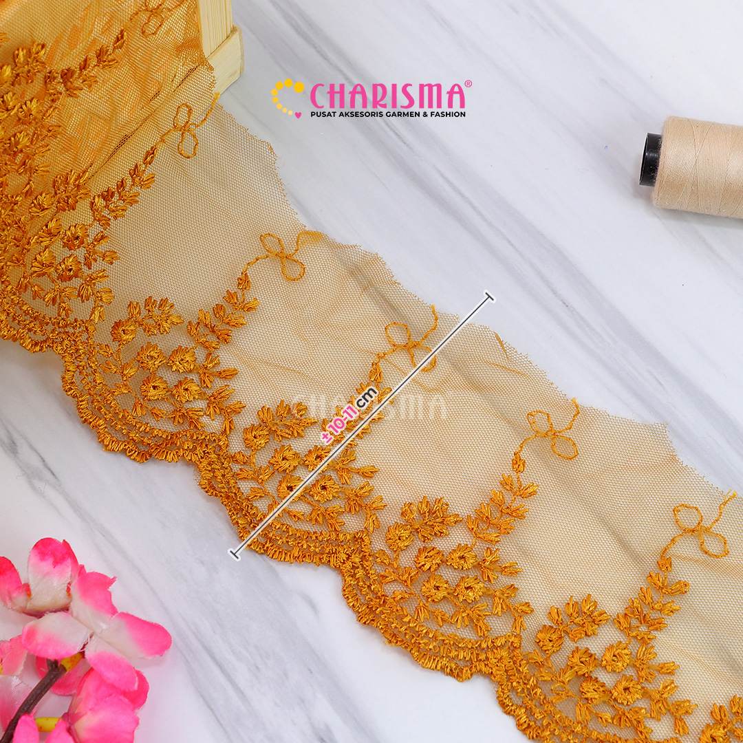 Bahan tulle yang ringan dan transparan, renda ini memberikan tampilan yang lembut dan anggun pada setiap proyek yang diaplikasikan.
