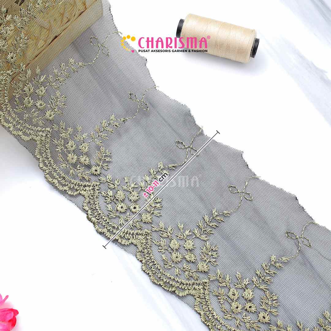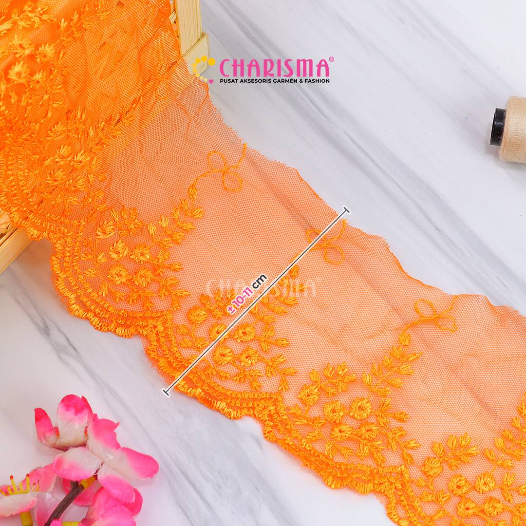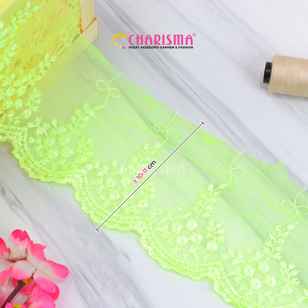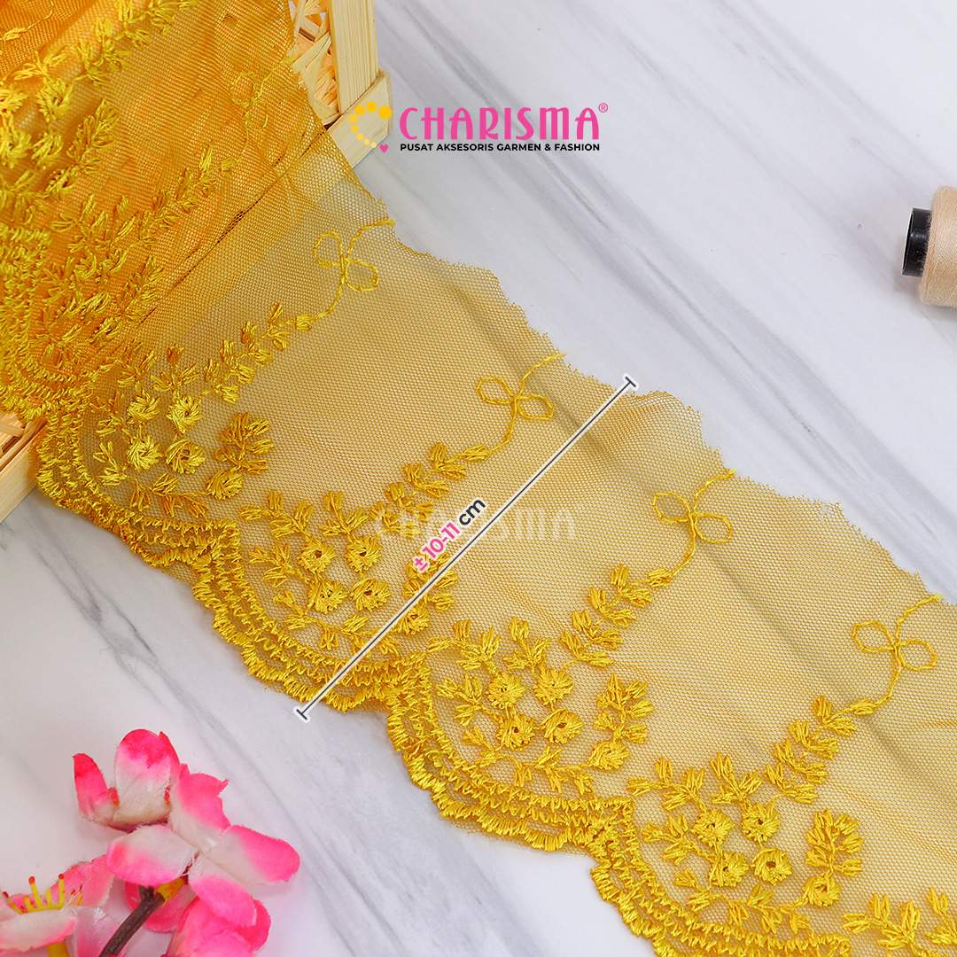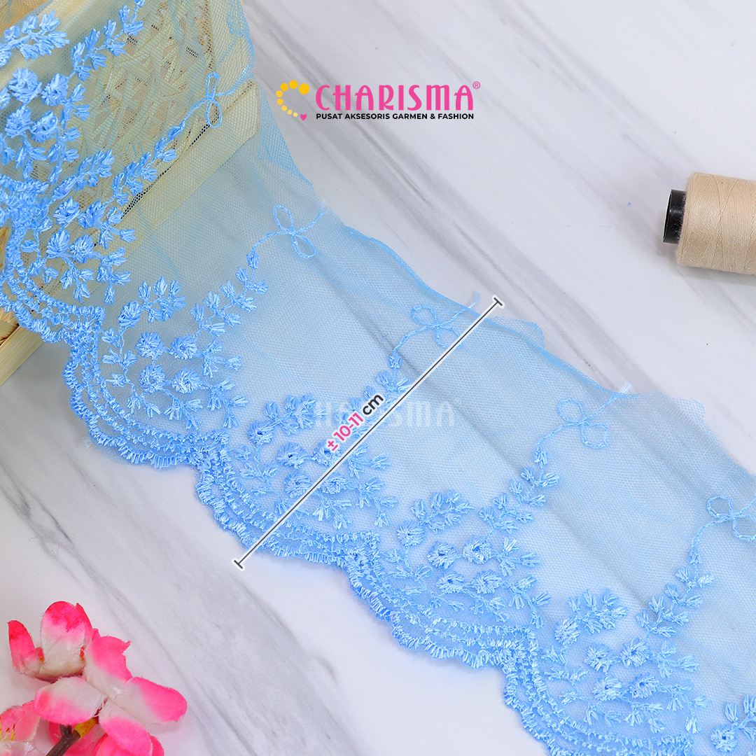 Bahan tulle yang ringan dan transparan, renda ini memberikan tampilan yang lembut dan anggun pada setiap proyek yang diaplikasikan.