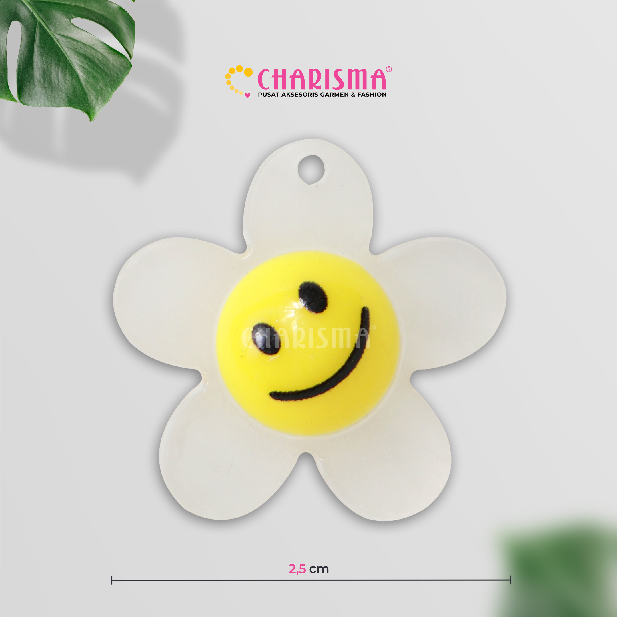 - Desain Bunga Smile Matahari yang Kreatif: Mote ini menampilkan desain bunga smile matahari yang ceria dan penuh gaya, memberikan elemen kreatif pada setiap item yang Anda hiasi.