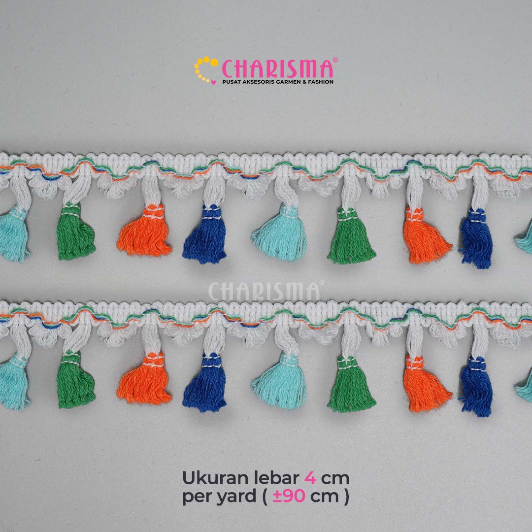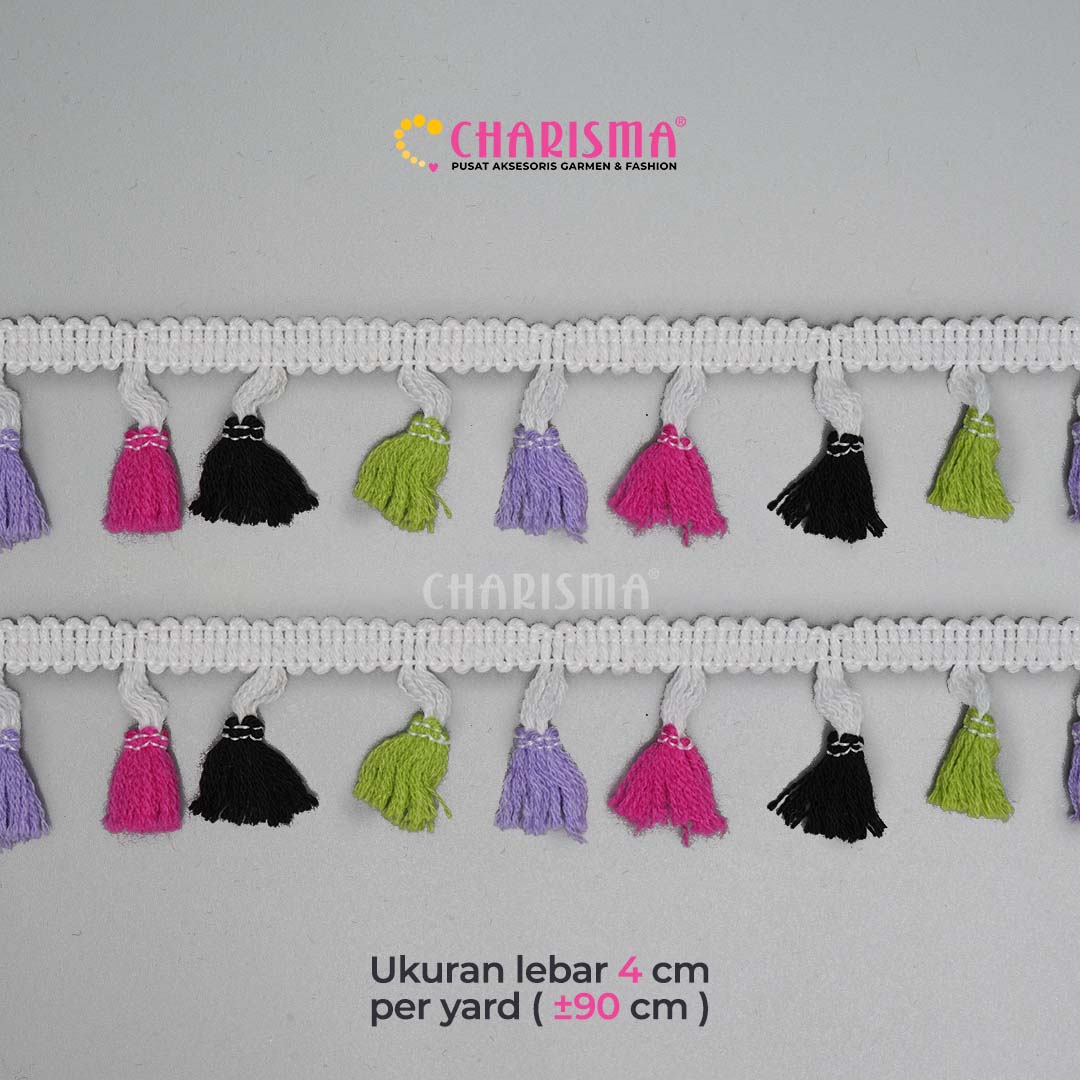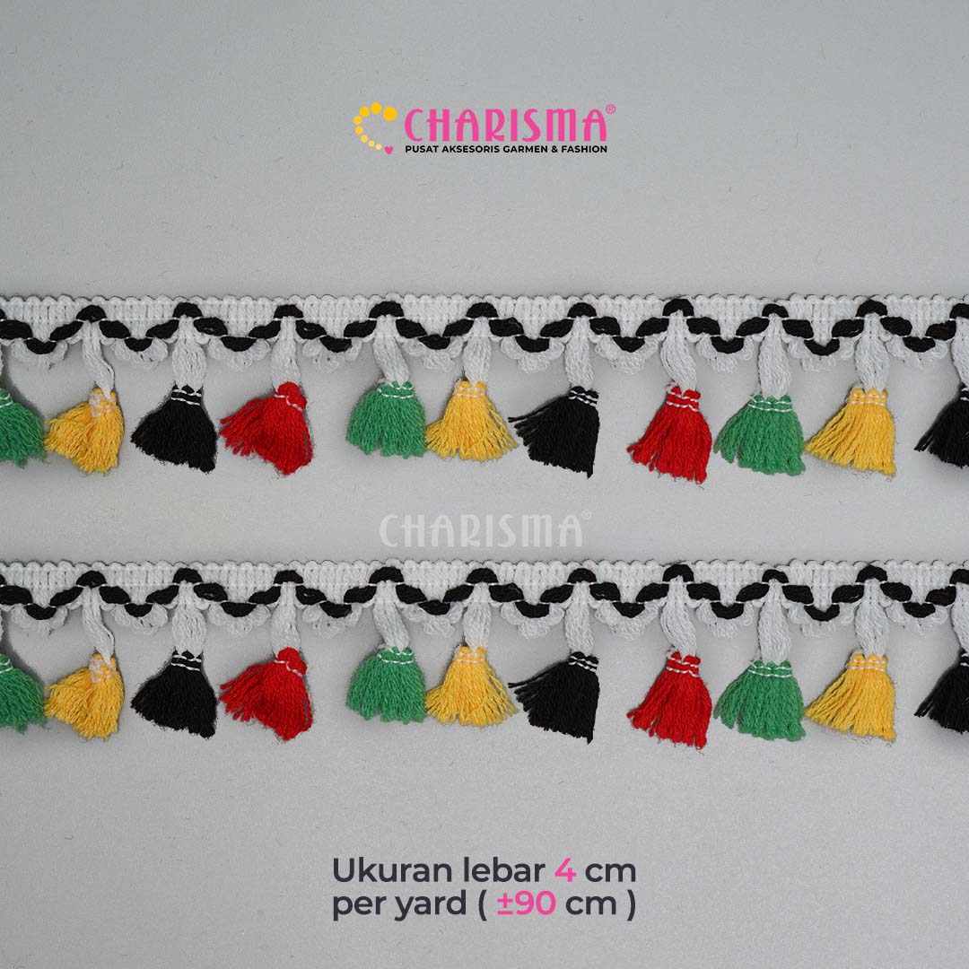 Charisma Renda Rumbai dengan berbagai jenis model dan warna yang sangat cocok di aplikasikan pada berbagai kebutuhan fashion busana seperti gaun, gamis, daster, blouse. dan lain sebagainya.