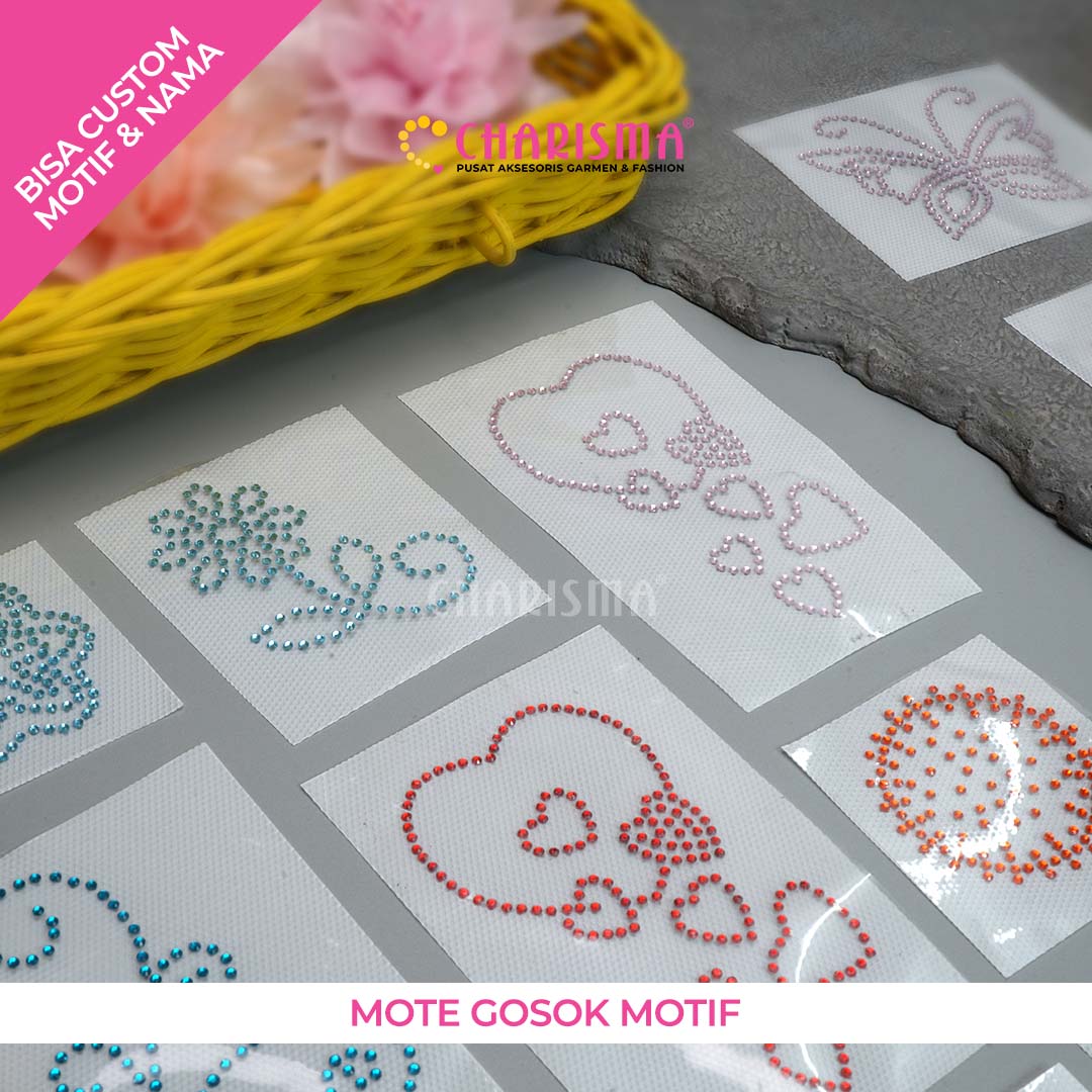 Charisma Mote Gosok Custom – solusi inovatif untuk memberikan sentuhan personal pada koleksi busana Anda. Mote Gosok Custom memberikan tampilan eksklusif dan autentik dengan menghadirkan mote berbentuk garis yang dapat disesuaikan dengan desain yang diinginkan.