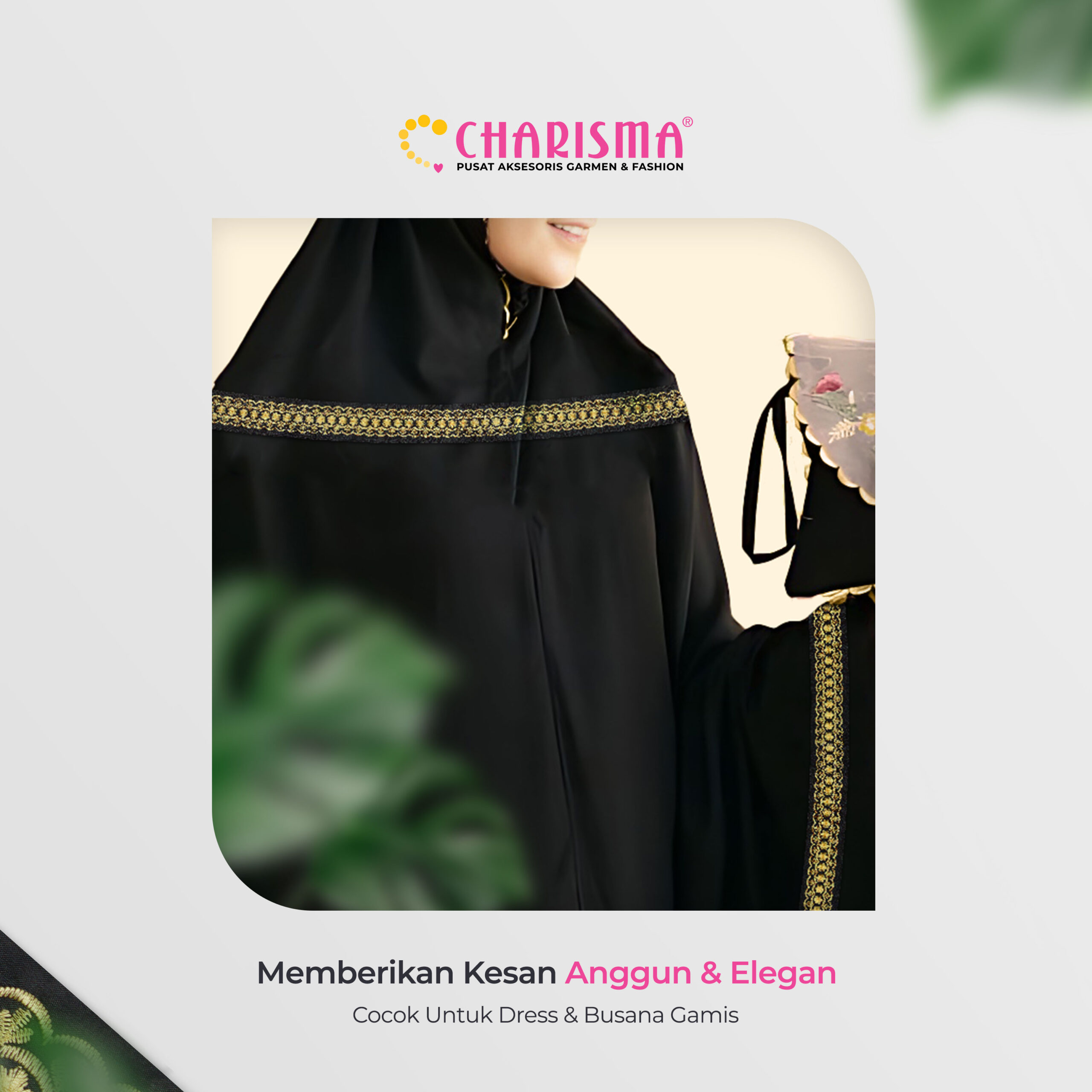 Charisma Renda Bordir ini cocok untuk busana dan dekorasi dengan sentuhan istimewa. Kain ini juga memiliki Warna Hitam coklat muda dan gold yang elegan dan akan membuat tampilan anda terlihat sempurna.