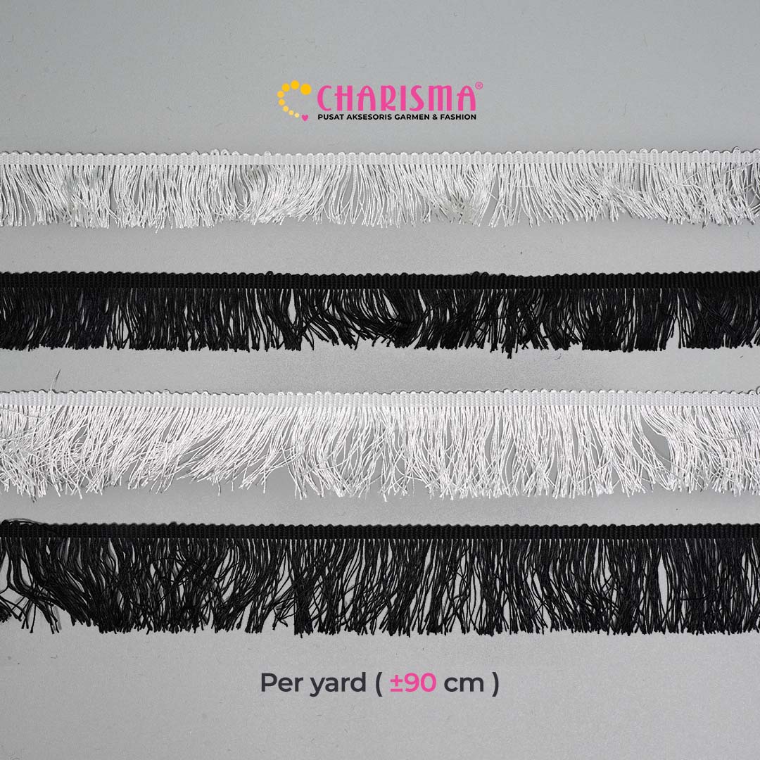 Renda rumbai ini dirancang untuk memenuhi kebutuhan fashion yang beragam, memberikan kemungkinan eksperimen yang luas untuk menciptakan gaya yang unik dan personal. Dengan variasi model, warna, dan ukuran yang ditawarkan, renda ini menjadi pilihan yang ideal untuk menambahkan sentuhan istimewa pada busana sehari-hari atau acara khusus.
