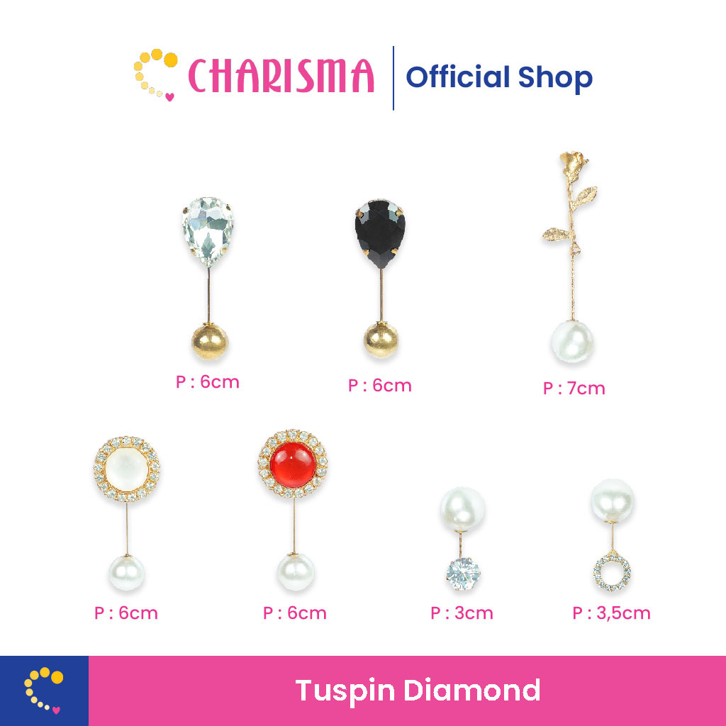 Charisma tuspin memiliki jarum yang tebal, tidah mudah bengkok, dan tajam, dilengkapi dengan ujung penutup mutiara sintetis sehingga aman dari resiko tertusuk. Tuspin ini memiliki model yang trendy, dapat digunakan untuk mempercantik berbagai outfit seperti hijab, kebaya, cardigan, dan blazer.